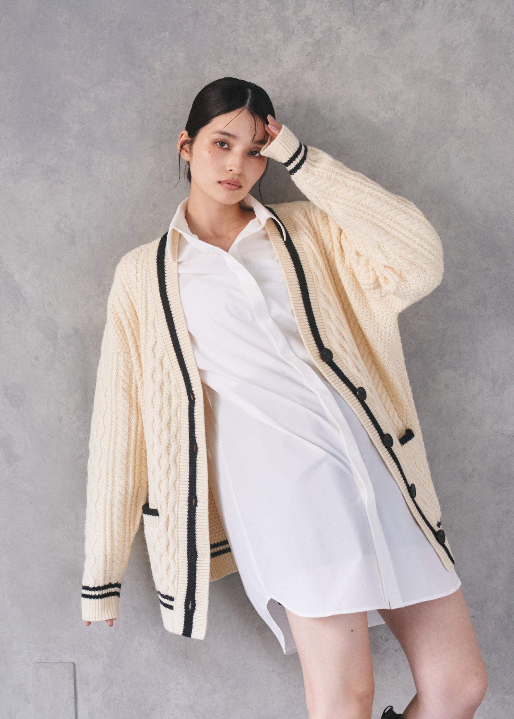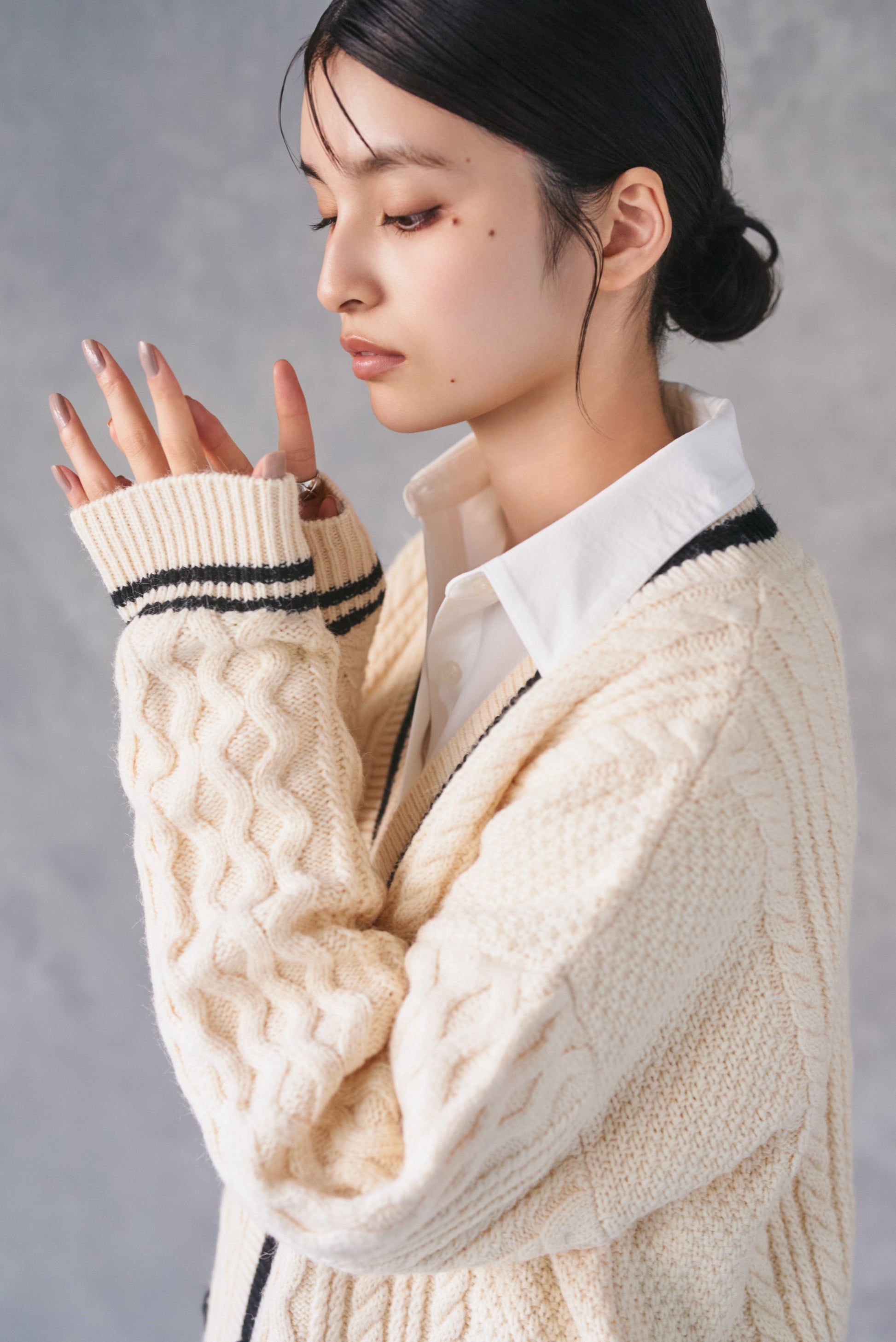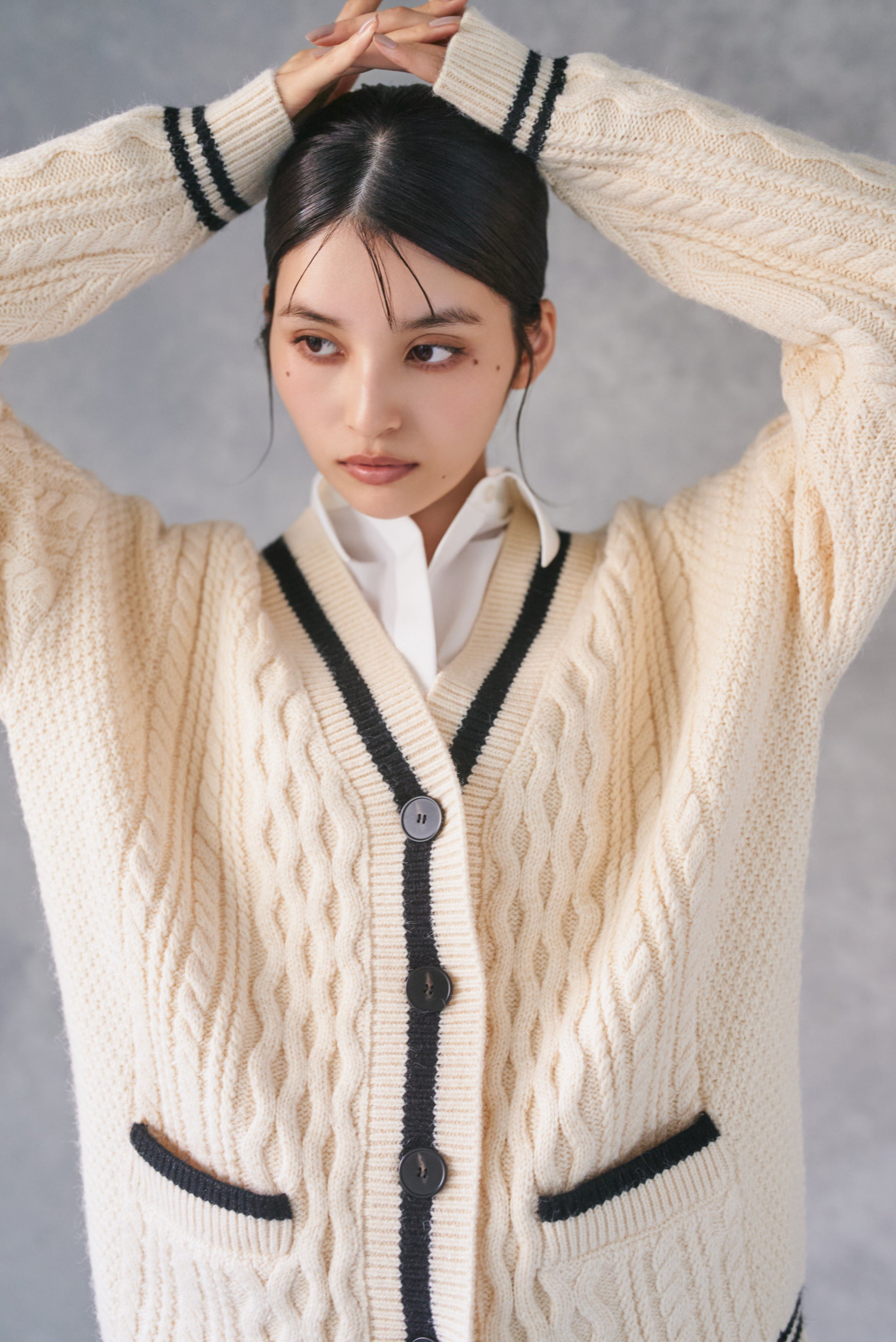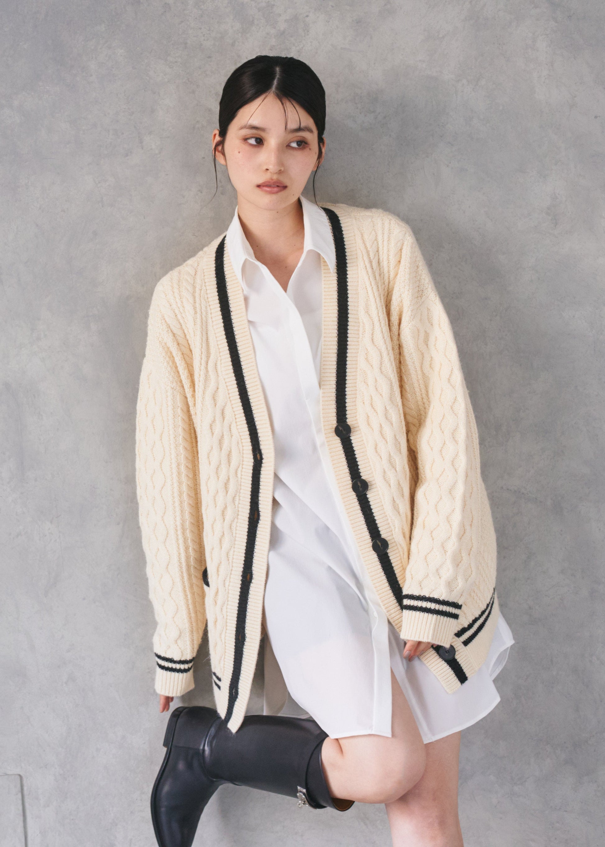 オーバーでゆったりとしたサイズ感が華奢見せや抜け感を演出するケーブル編みニットカーディガン。立体的なケーブル編みがアクセントを加えてくれます。