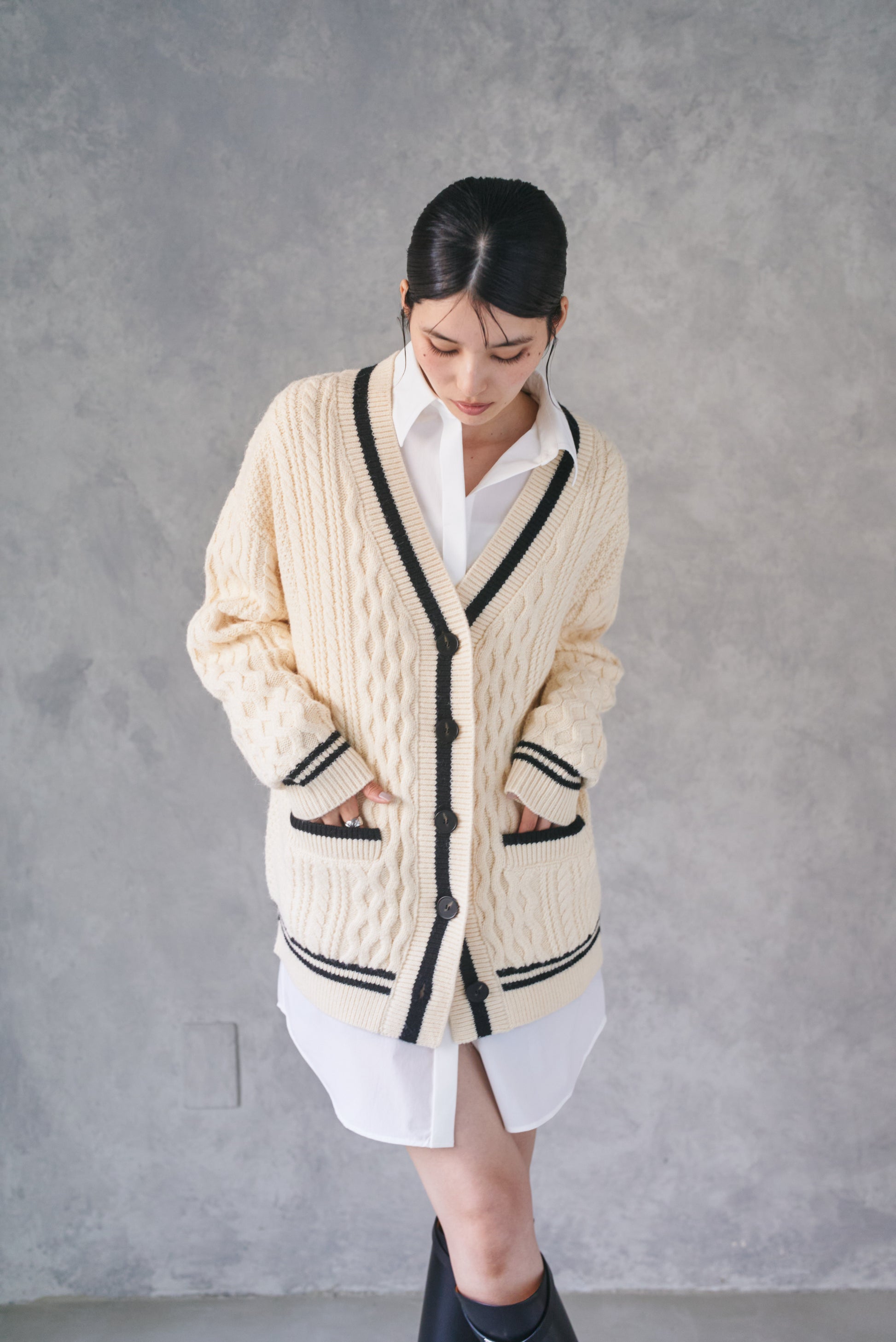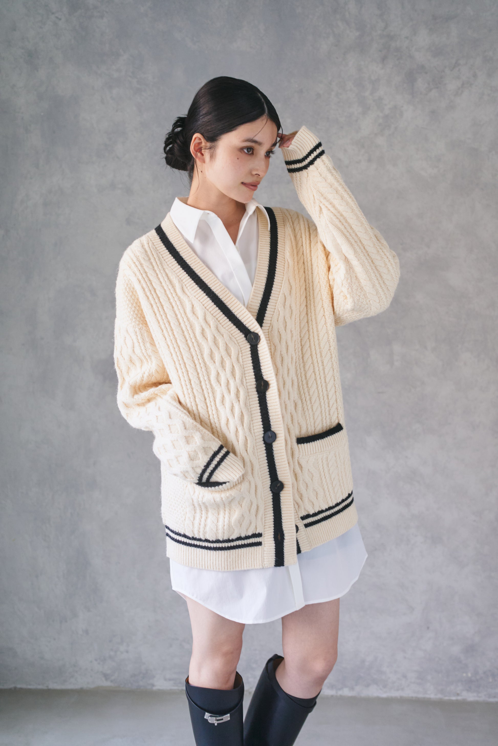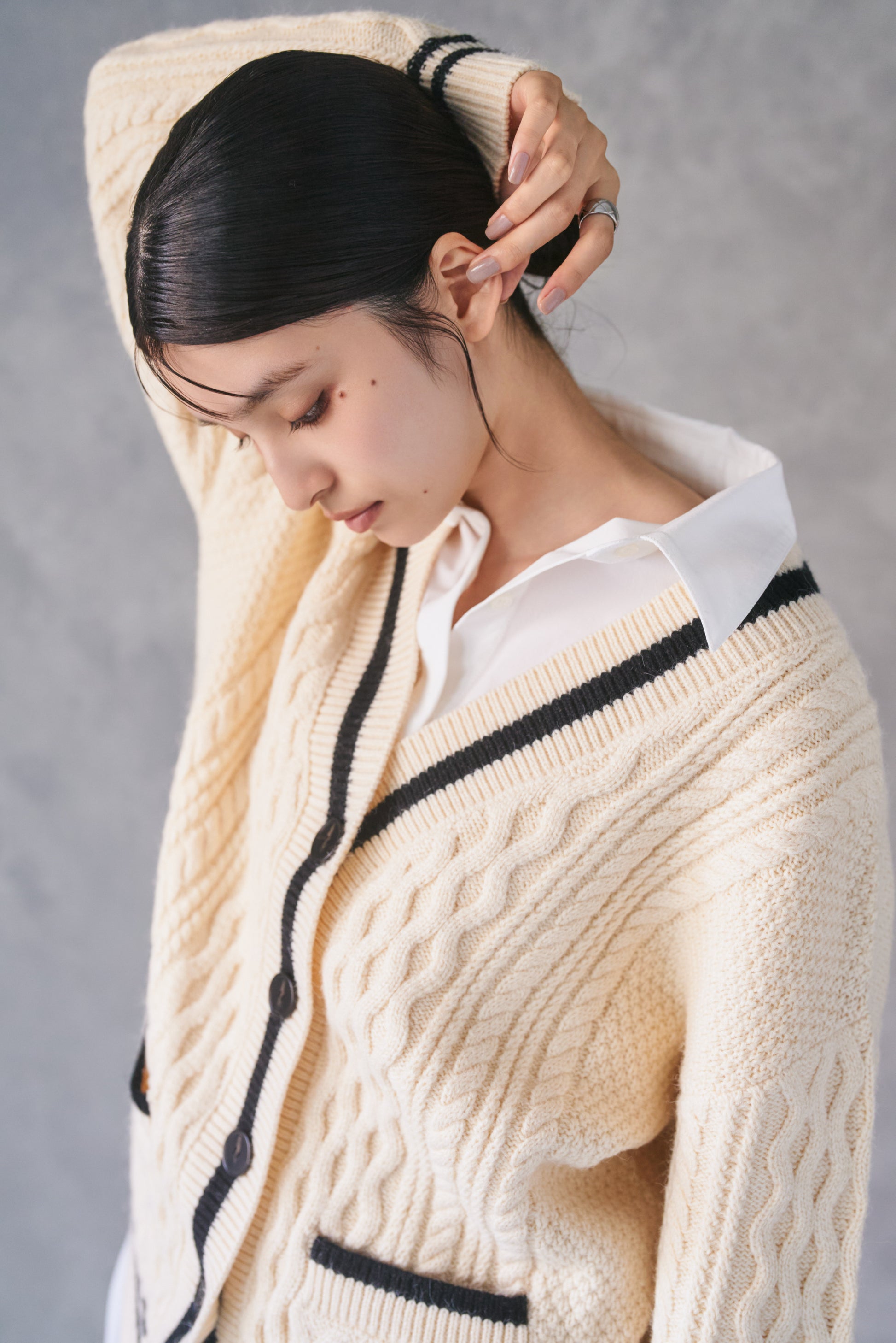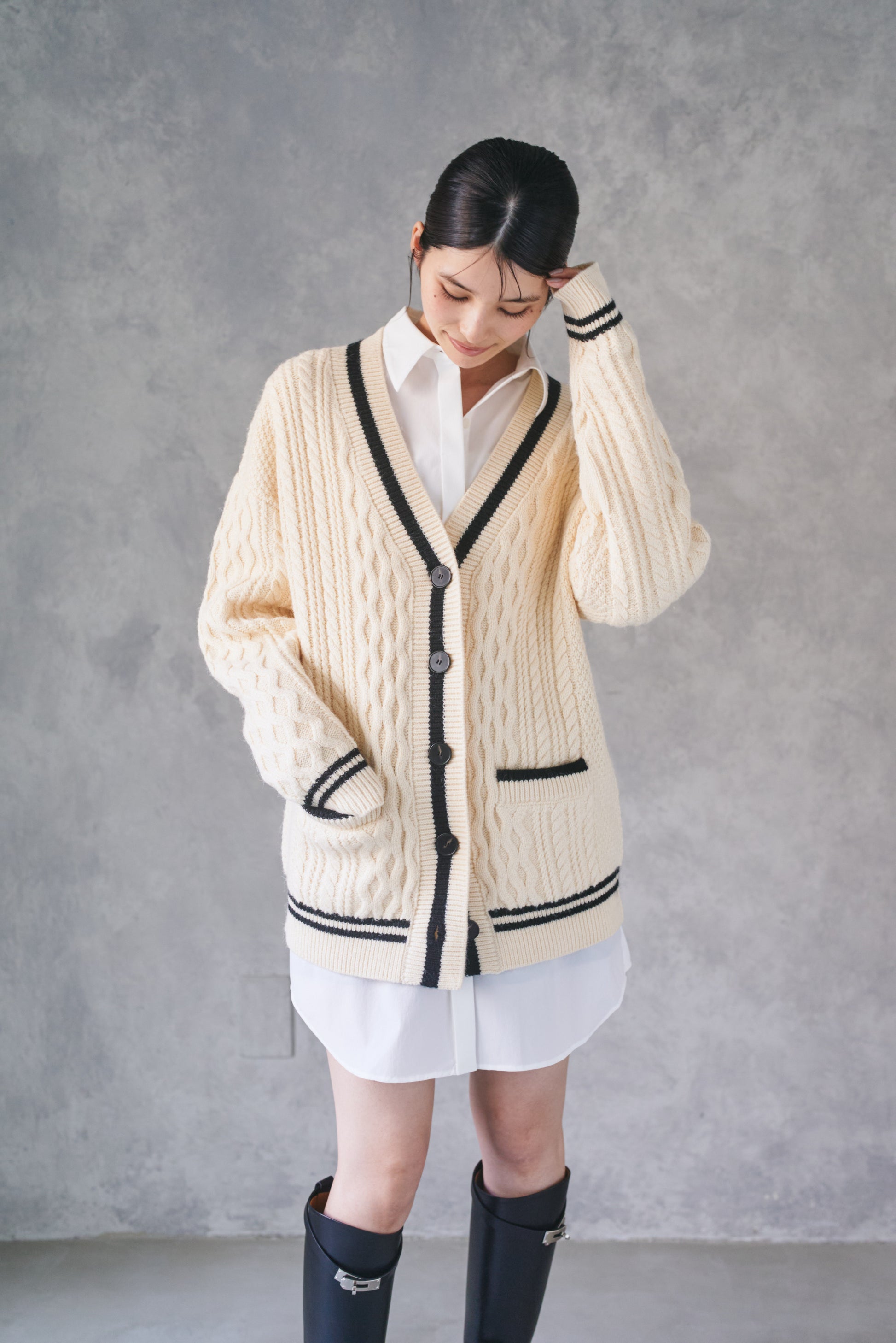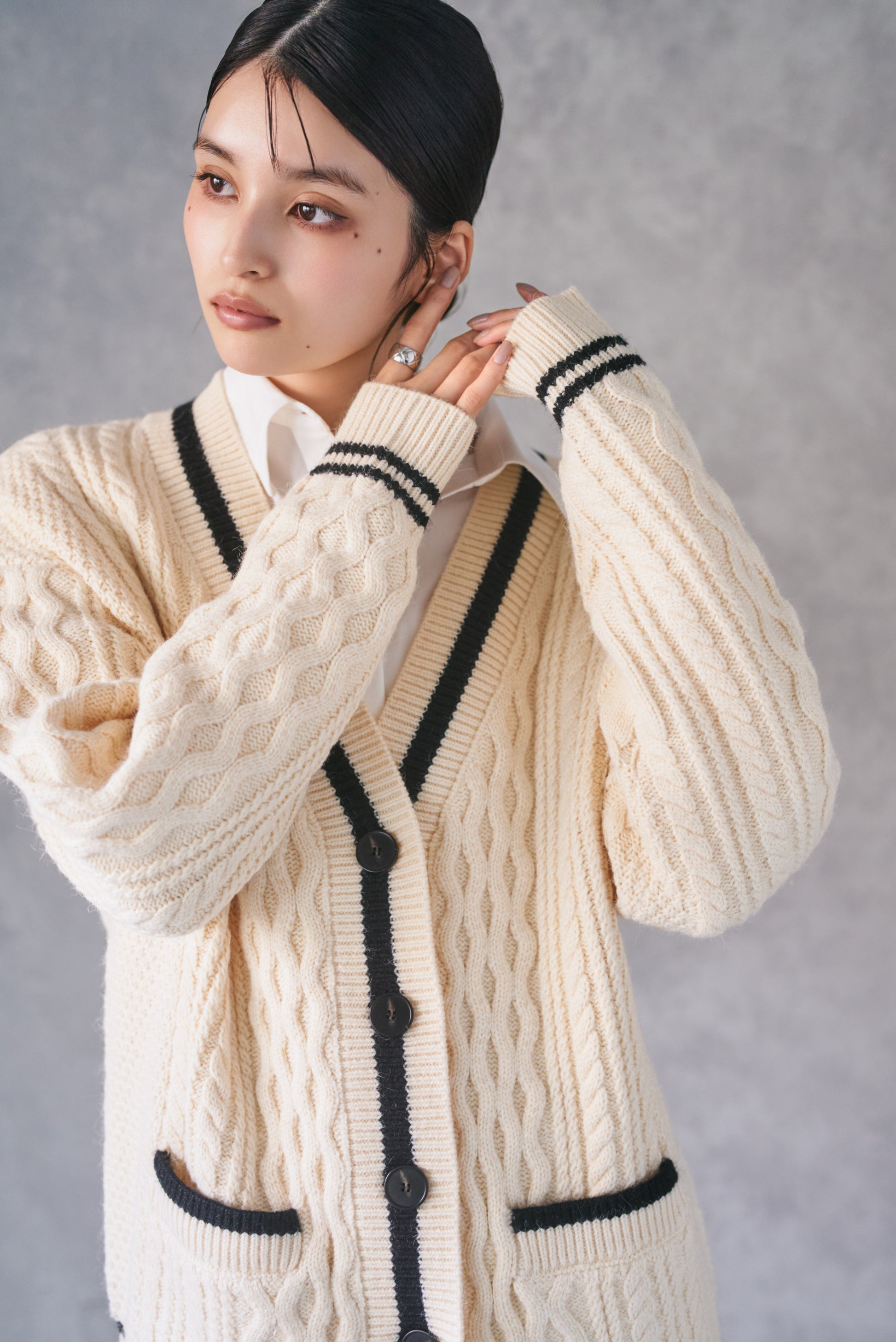 オーバーでゆったりとしたサイズ感が華奢見せや抜け感を演出するケーブル編みニットカーディガン。立体的なケーブル編みがアクセントを加えてくれます。