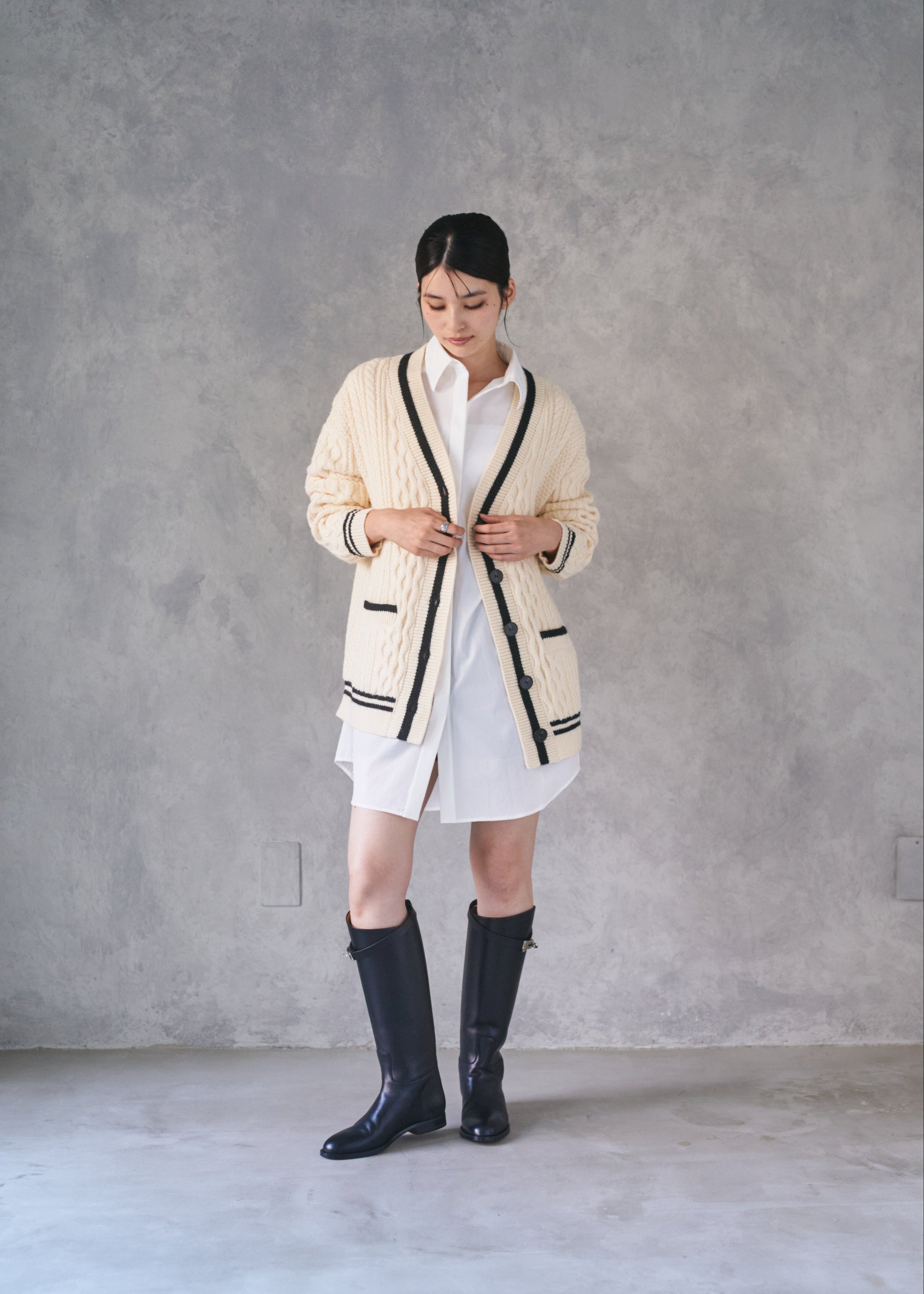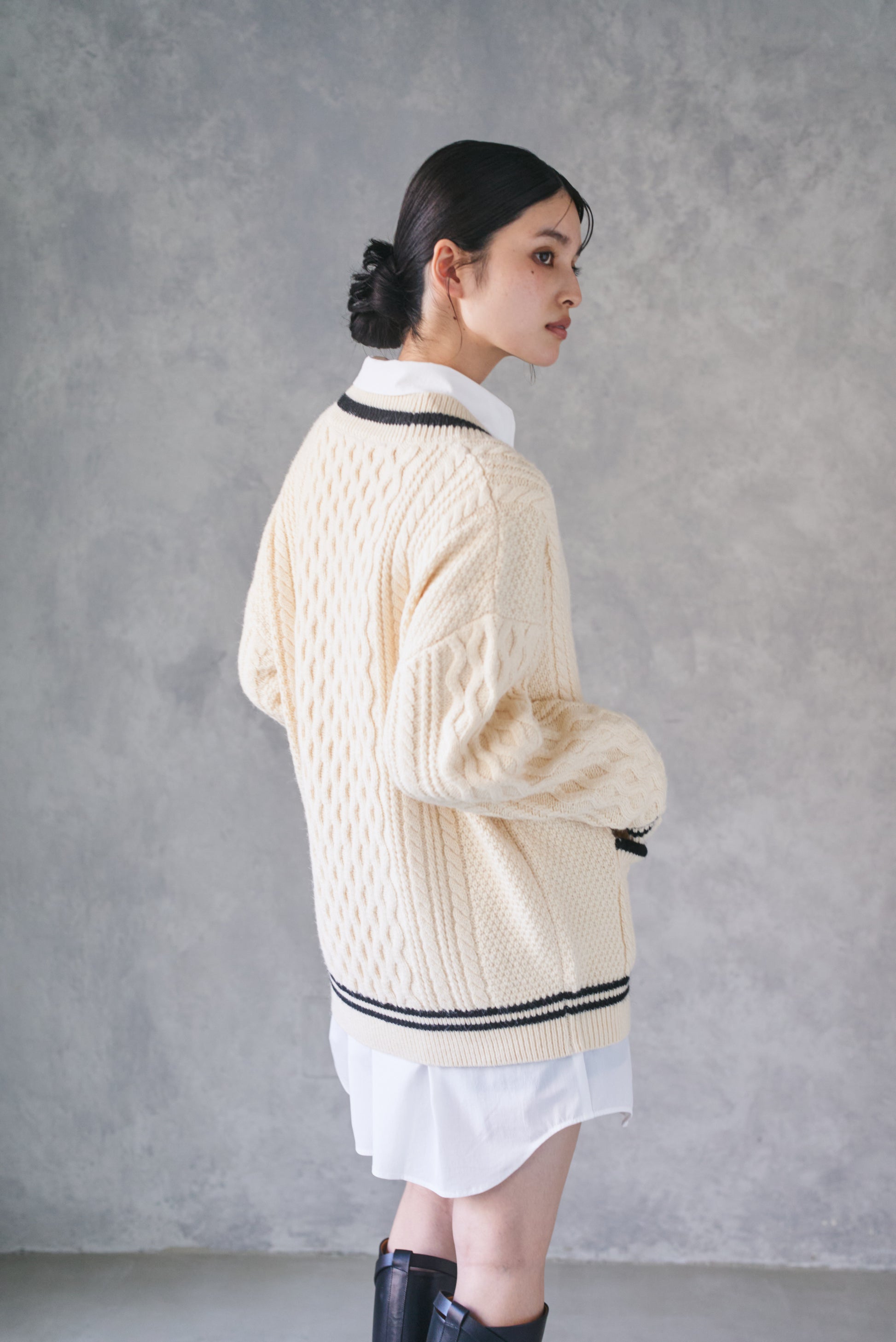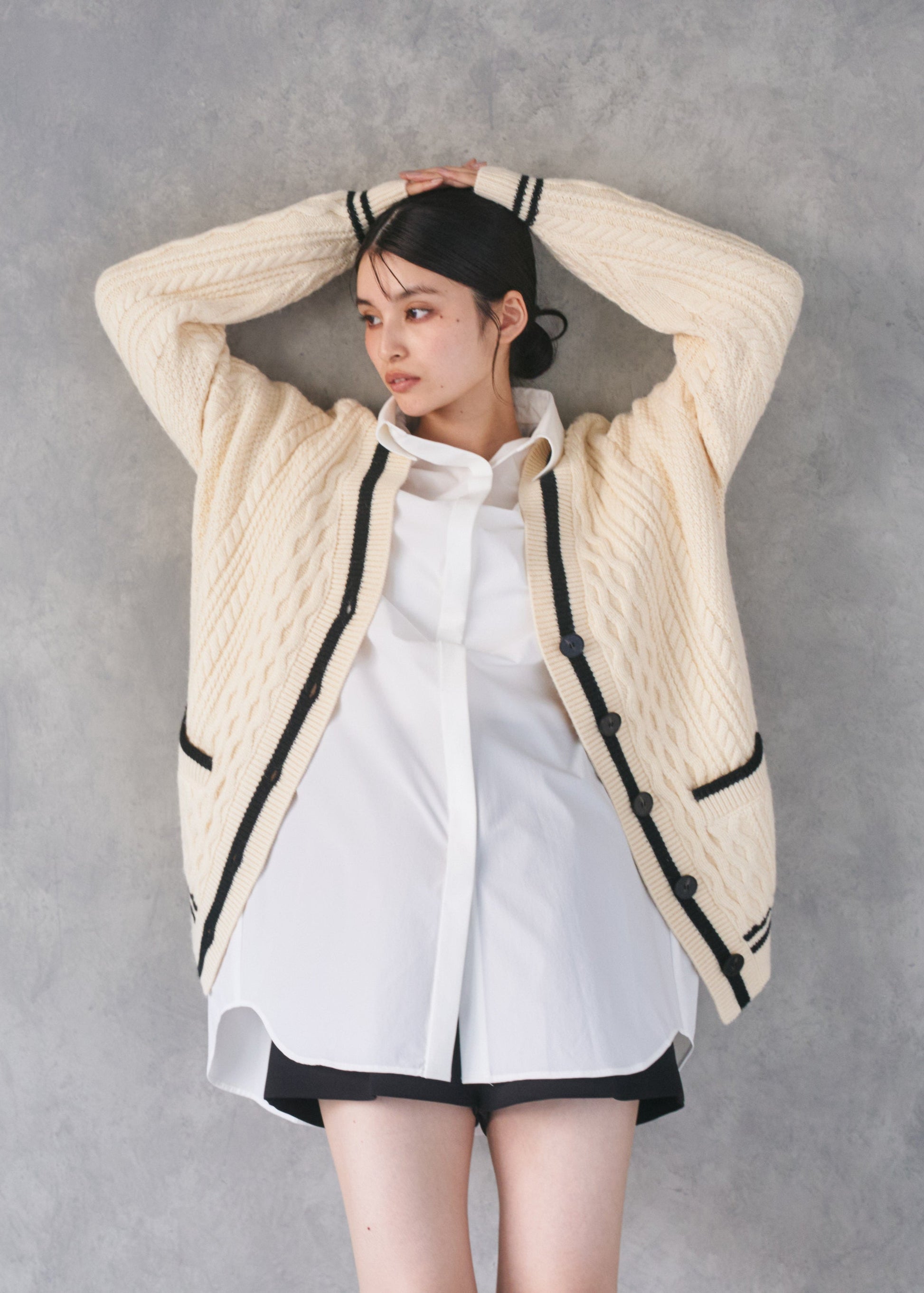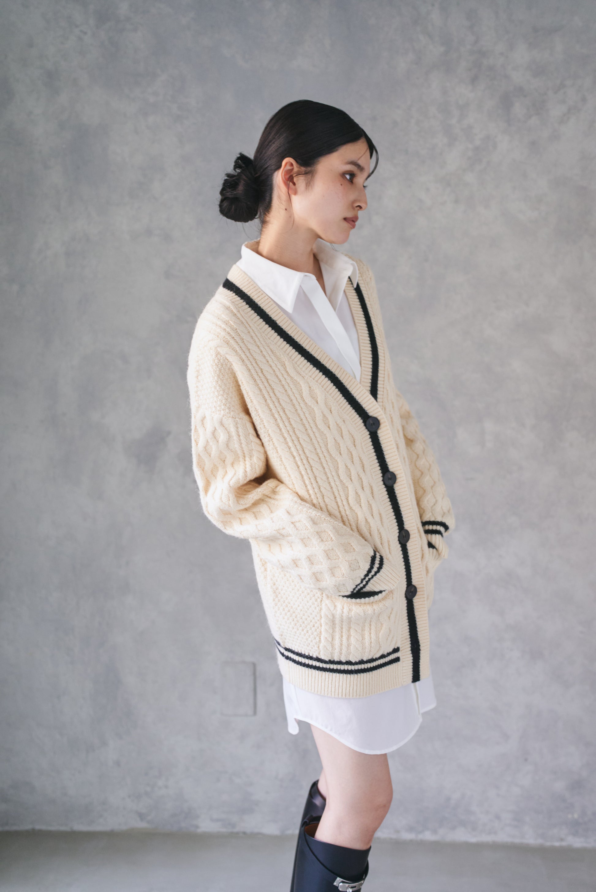オーバーでゆったりとしたサイズ感が華奢見せや抜け感を演出するケーブル編みニットカーディガン。立体的なケーブル編みがアクセントを加えてくれます。