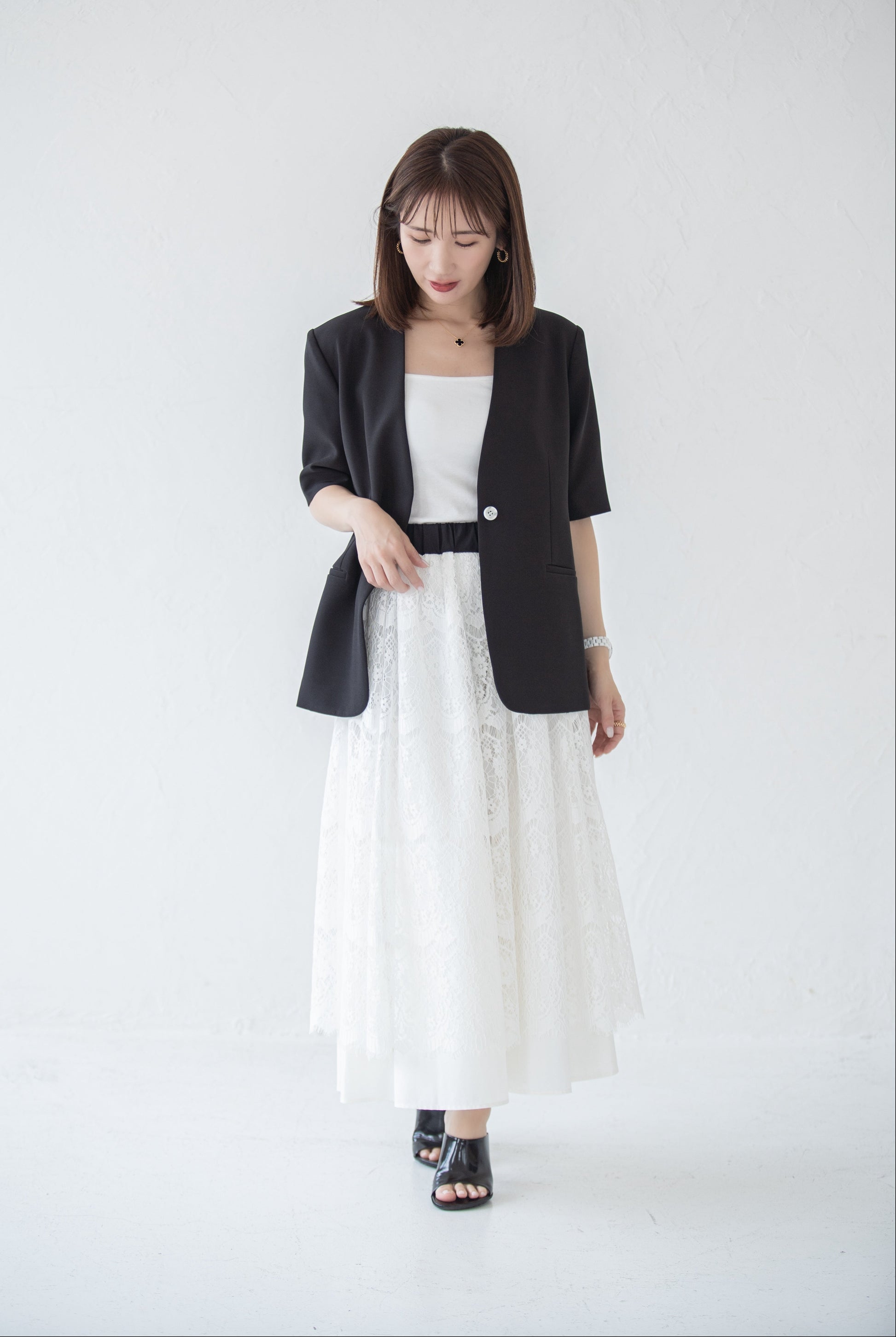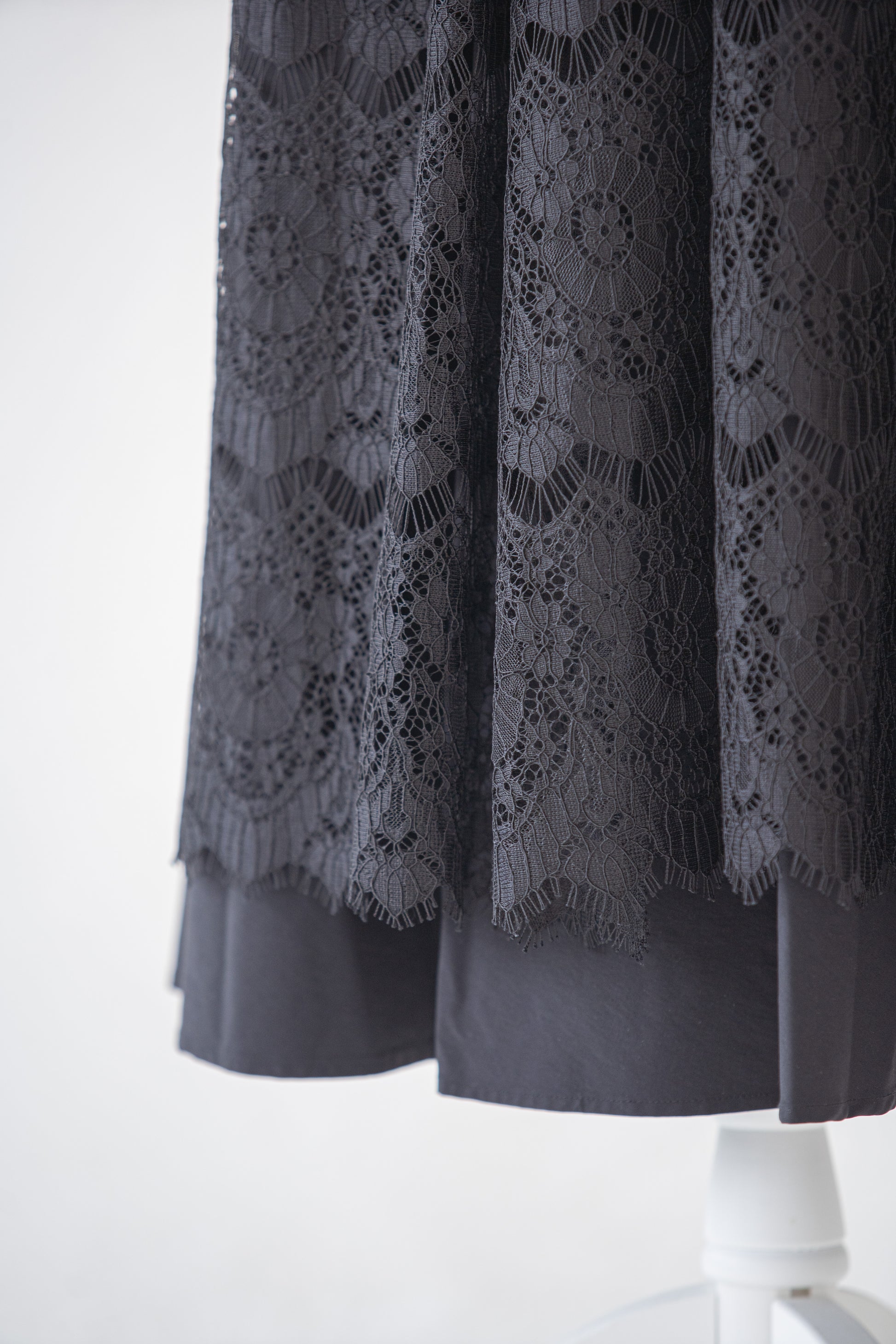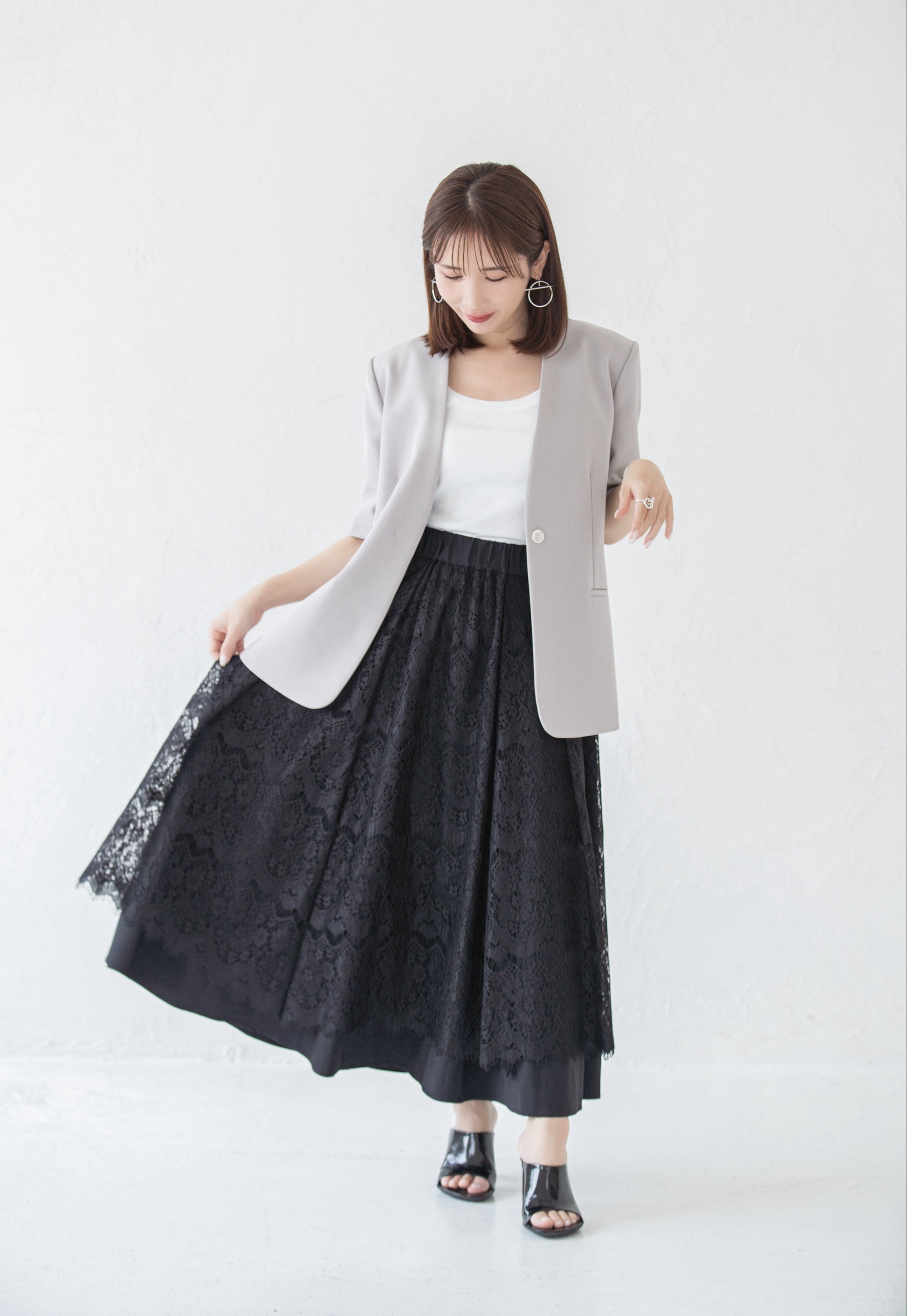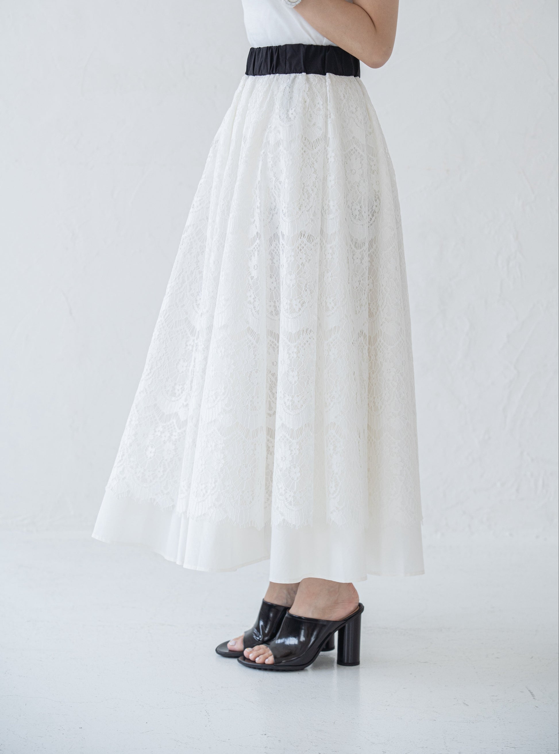 洗練されたディテールとロマンテックな魅力のあるボリューム感が特徴のレースのフルスカート。エレガントで洗練されたデザインにもかかわらずウエストぐるりゴムのためストレスなくどんな体型の方にも、日常的にお使いいただきやすいデザインに仕上げました。