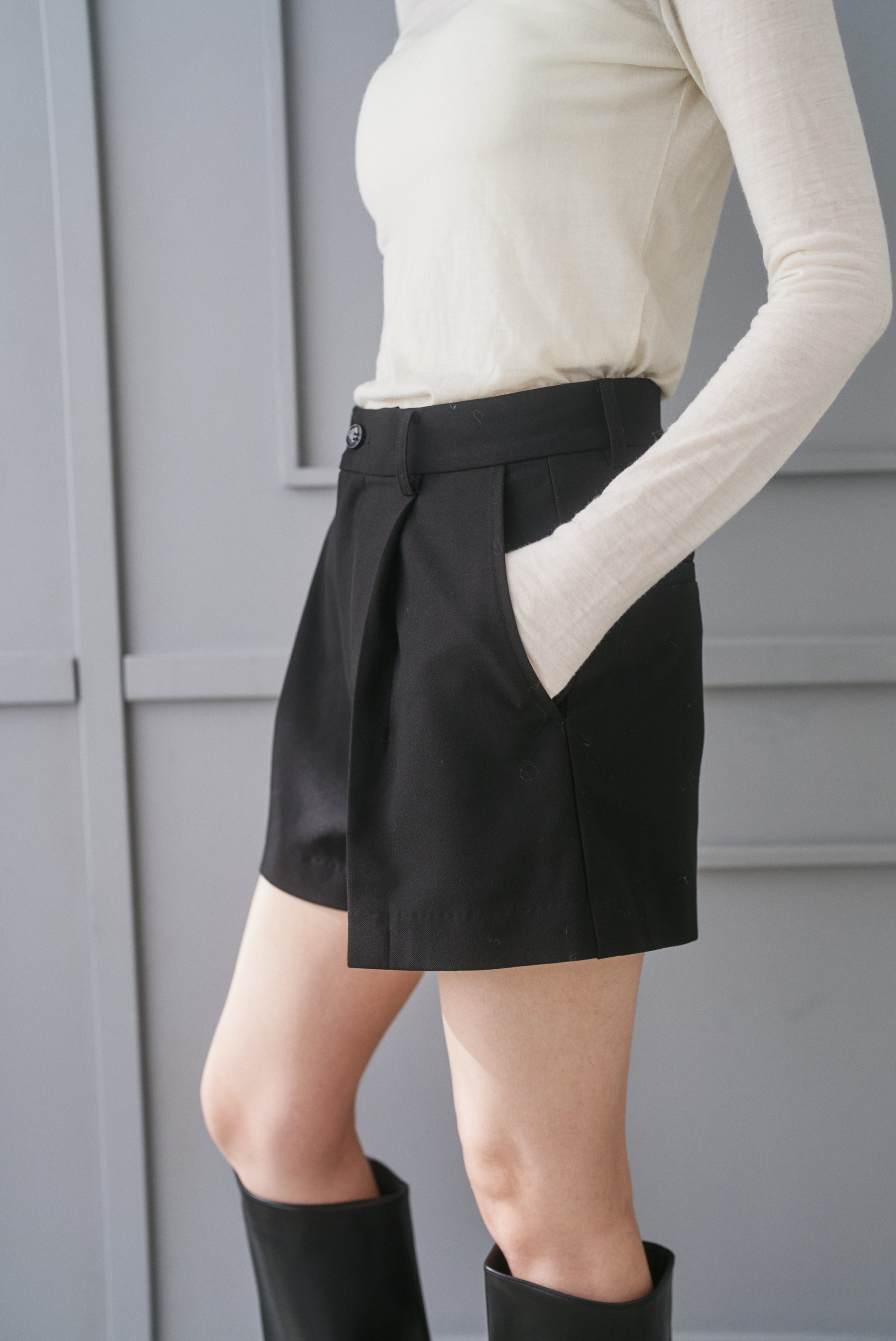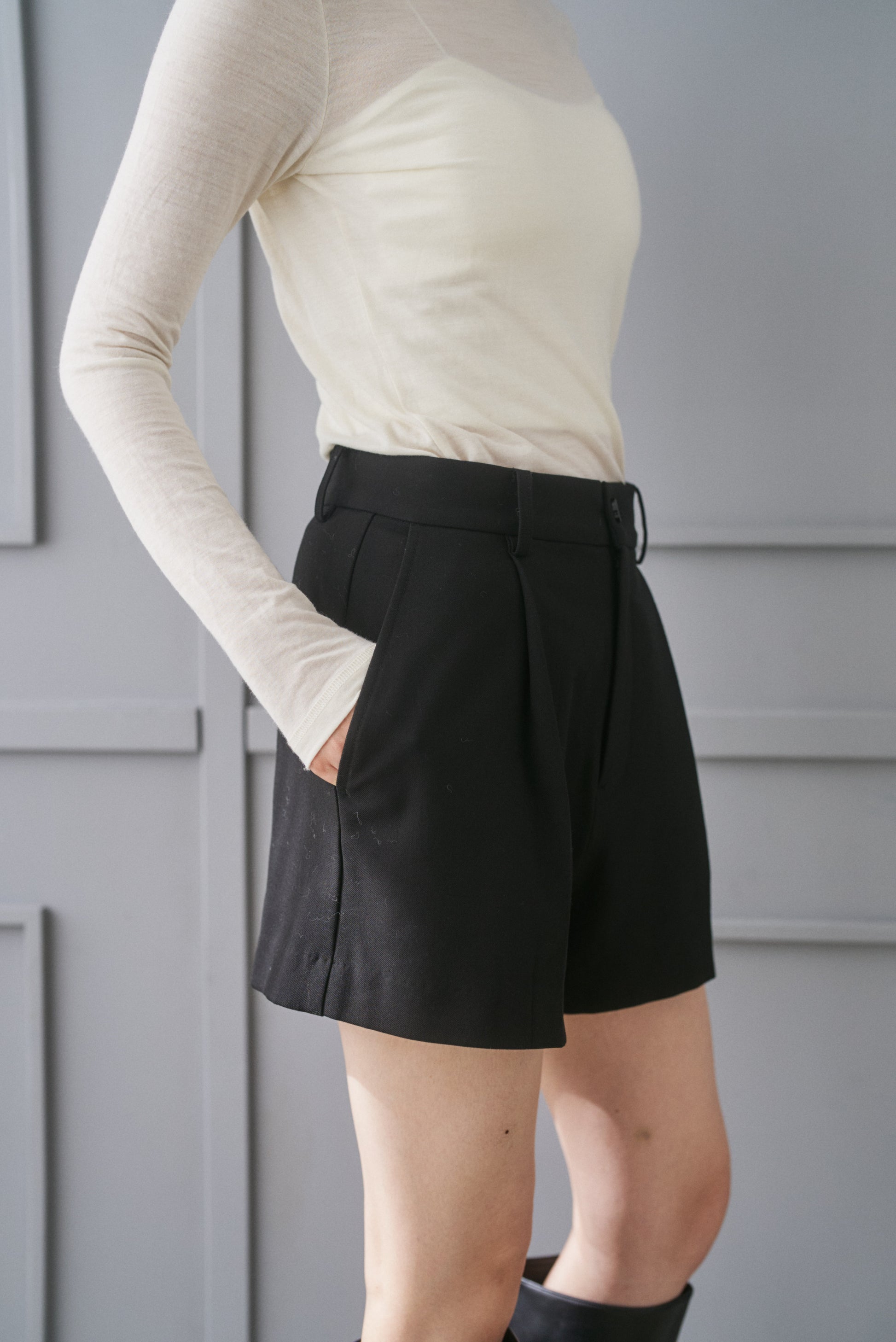 シングルブレストジャケットとセットアップでおつくりしたショートパンツです。