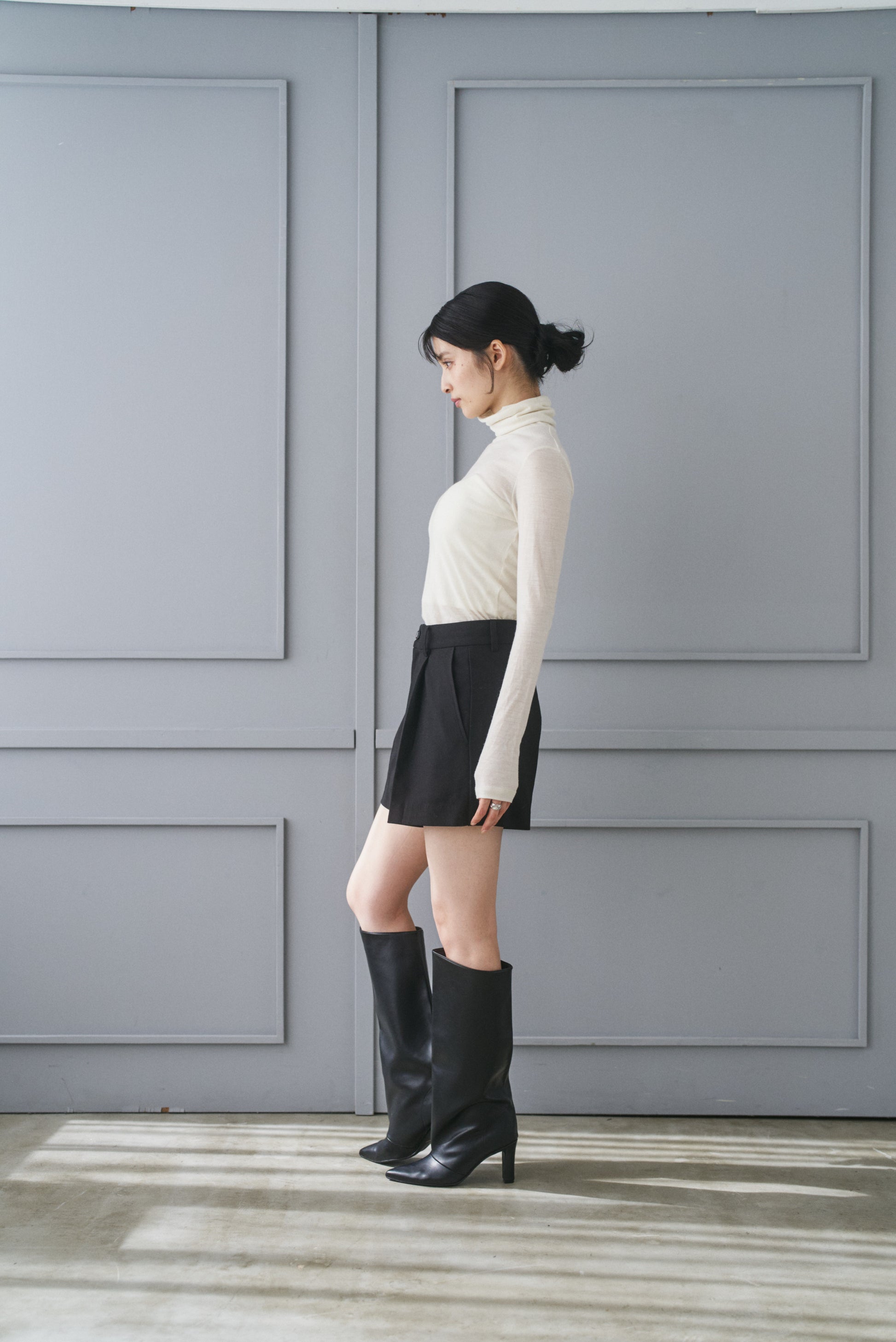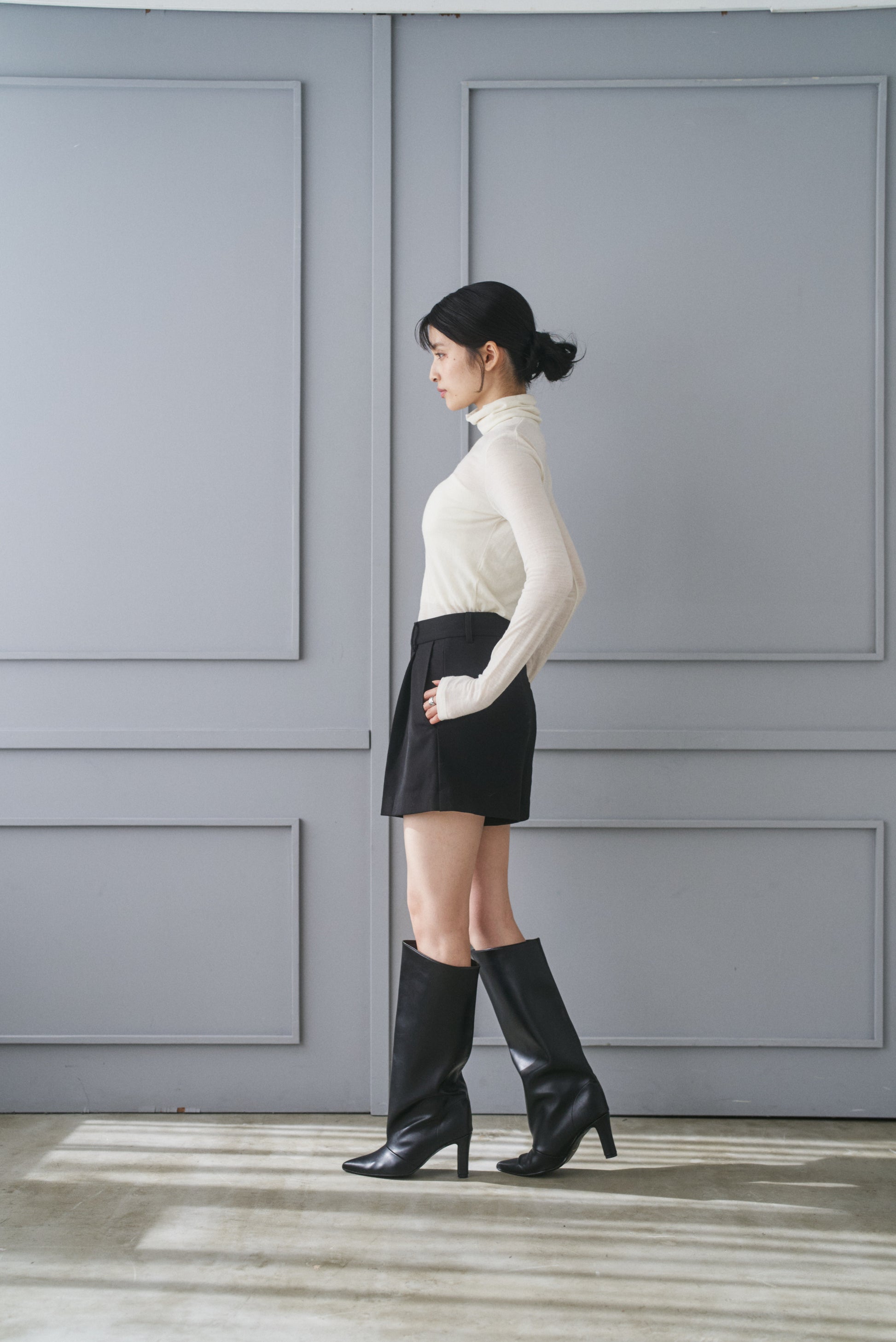 腰でも履けるようにゆったりめのサイジングです。ベルトをしていただければウエストジャストで履いて丈の長さをお好みで調整いただけるようにしました。