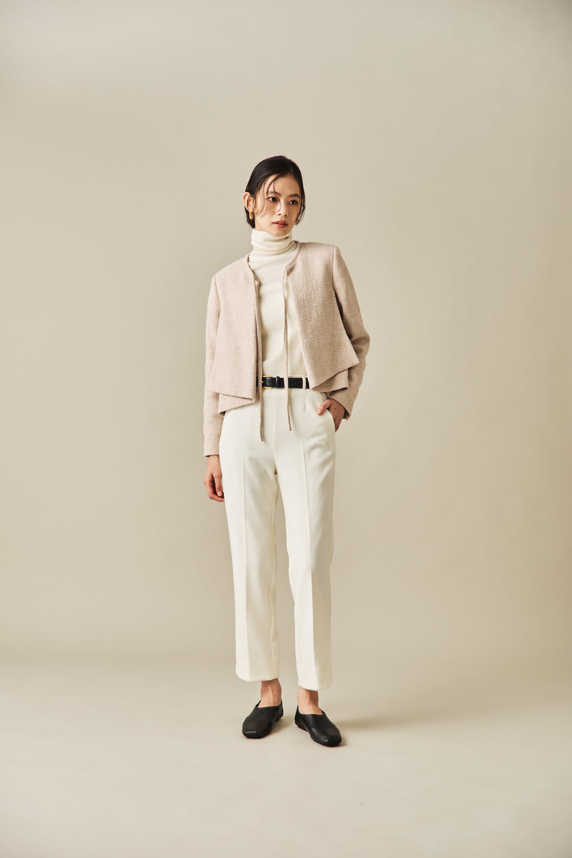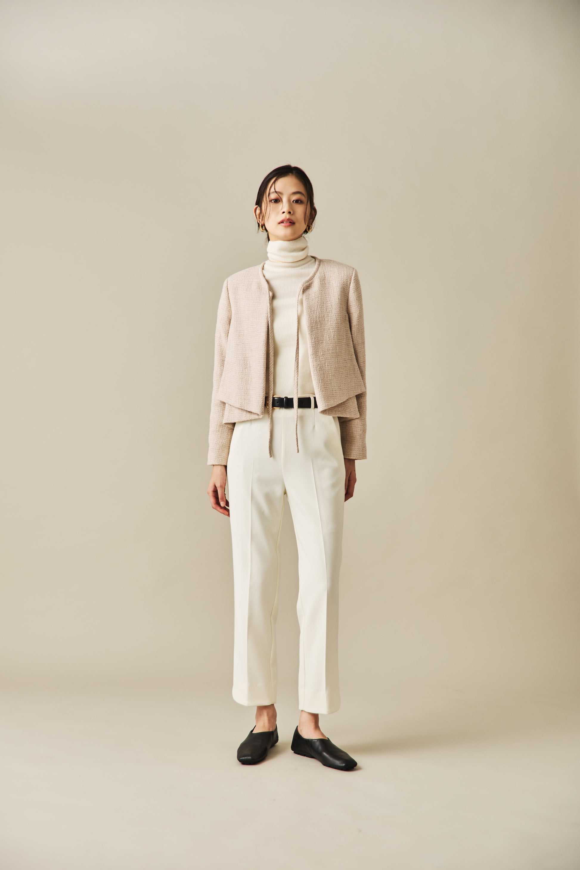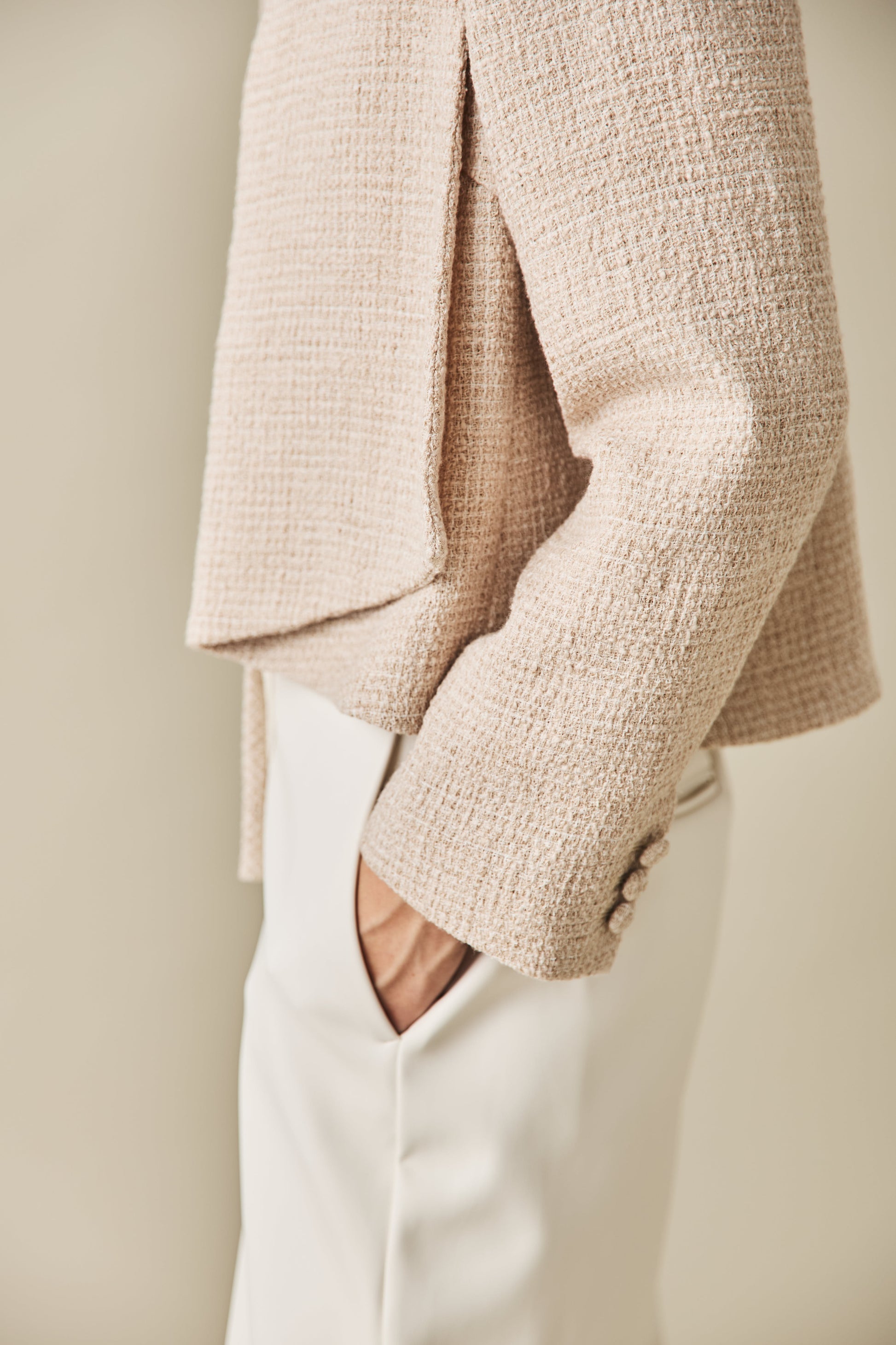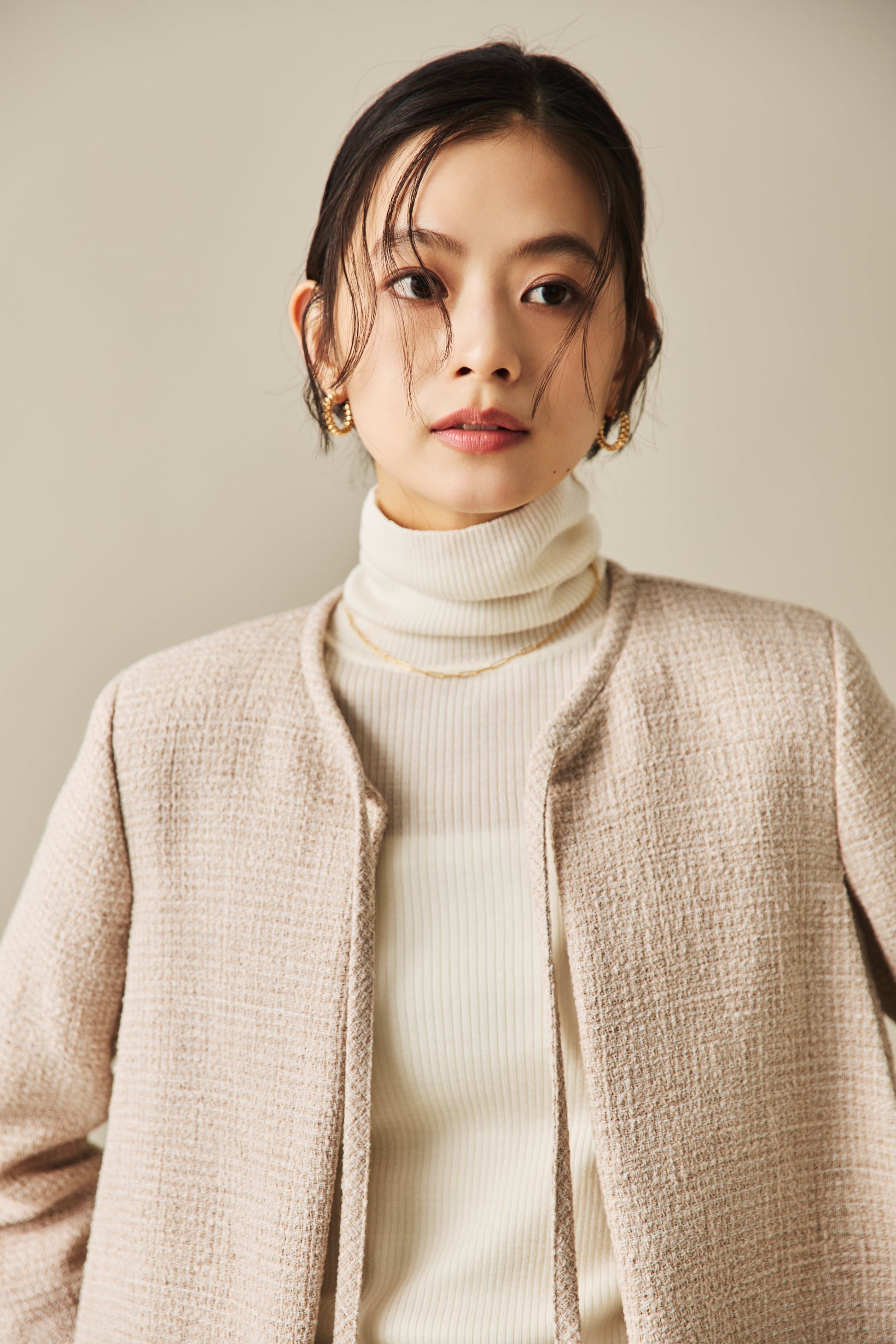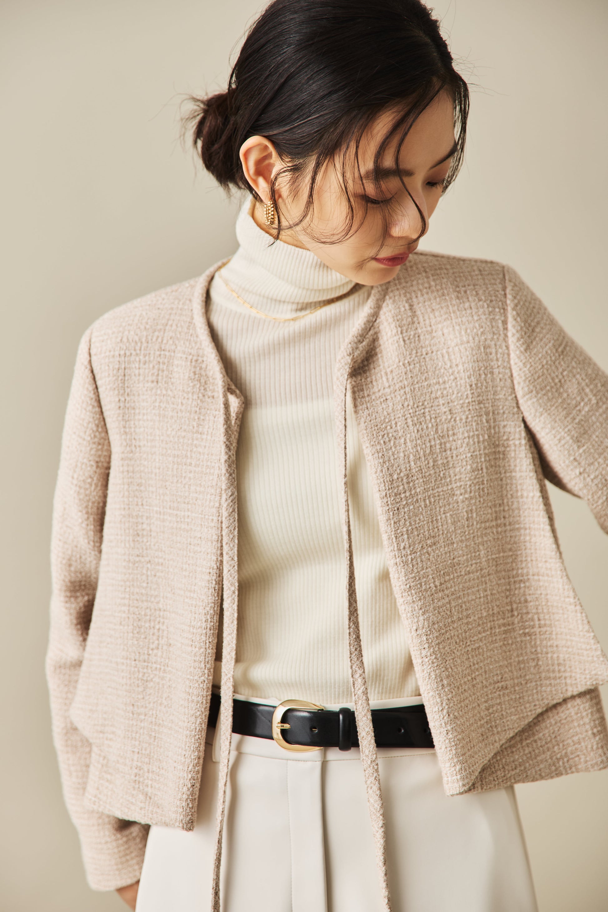 国内の上質なツイード素材を使用したジャケットです。従来の硬いツイードとは一線を画す、ソフトで柔らかい肌触りが魅力。見た目の美しさだけでなく、着心地にもこだわったソフトな風合い。体に優しく馴染み、ストレスフリーで着用いただけます。