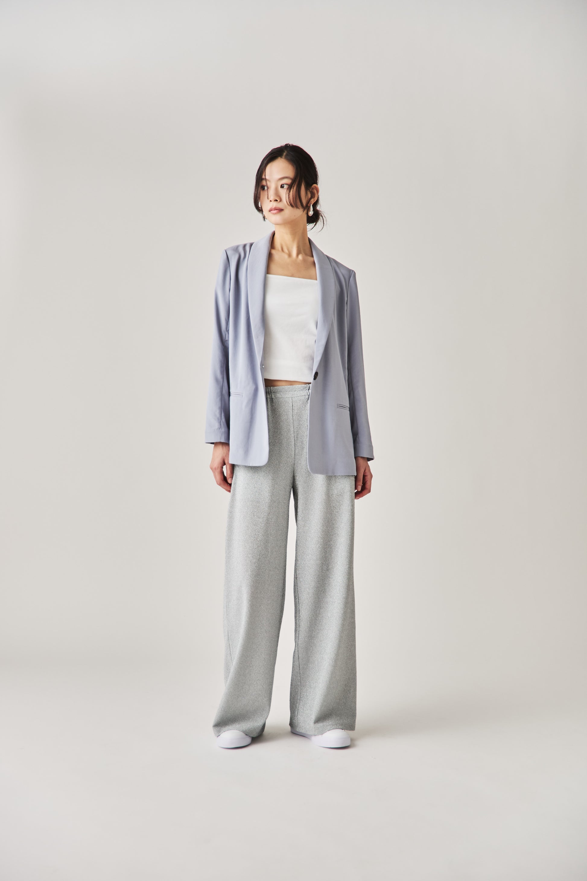 スウェットのトップスと合わせてカジュアルにも、ジャケットと合わせてオフィスコーデにも。 普段の黒パンツをきらきらデザインが施されたこちらのパンツをあわせることでグンと垢抜けた印象に。