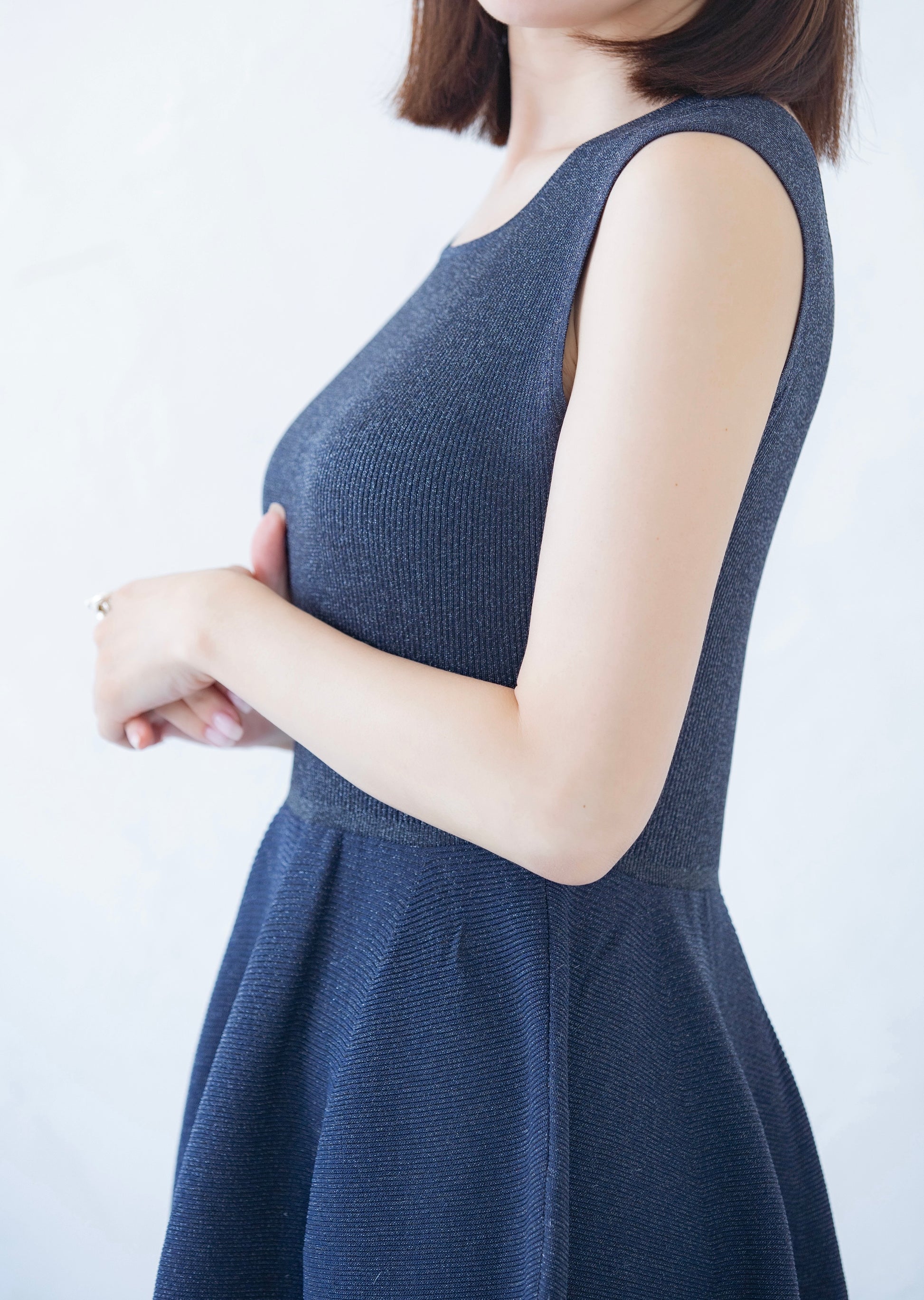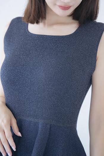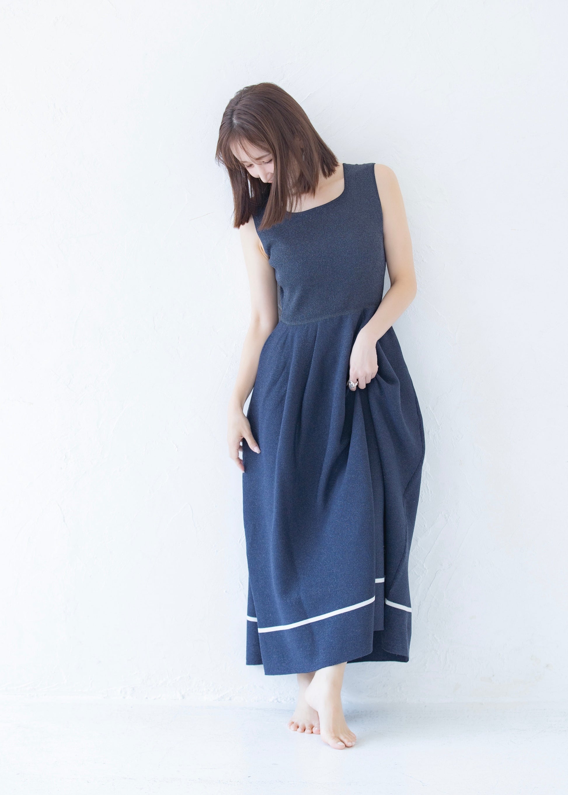 適度なハリと弾力のあるポリエステル100%のニット素材のワンピースです。