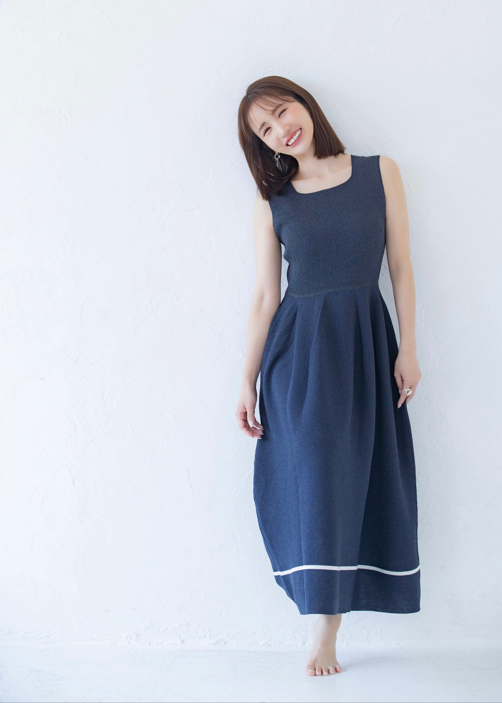 伸びのいい素材でどんな体型の方にもご着用いただけます。動きやすく非常に軽いのでとても着心地もいいです。ウエストは程よくシェイプされつつも、体型カバーにすぐれています。首周りはデコルテを綺麗に見せるスクエアネックの衿ぐりのデザインにしました。