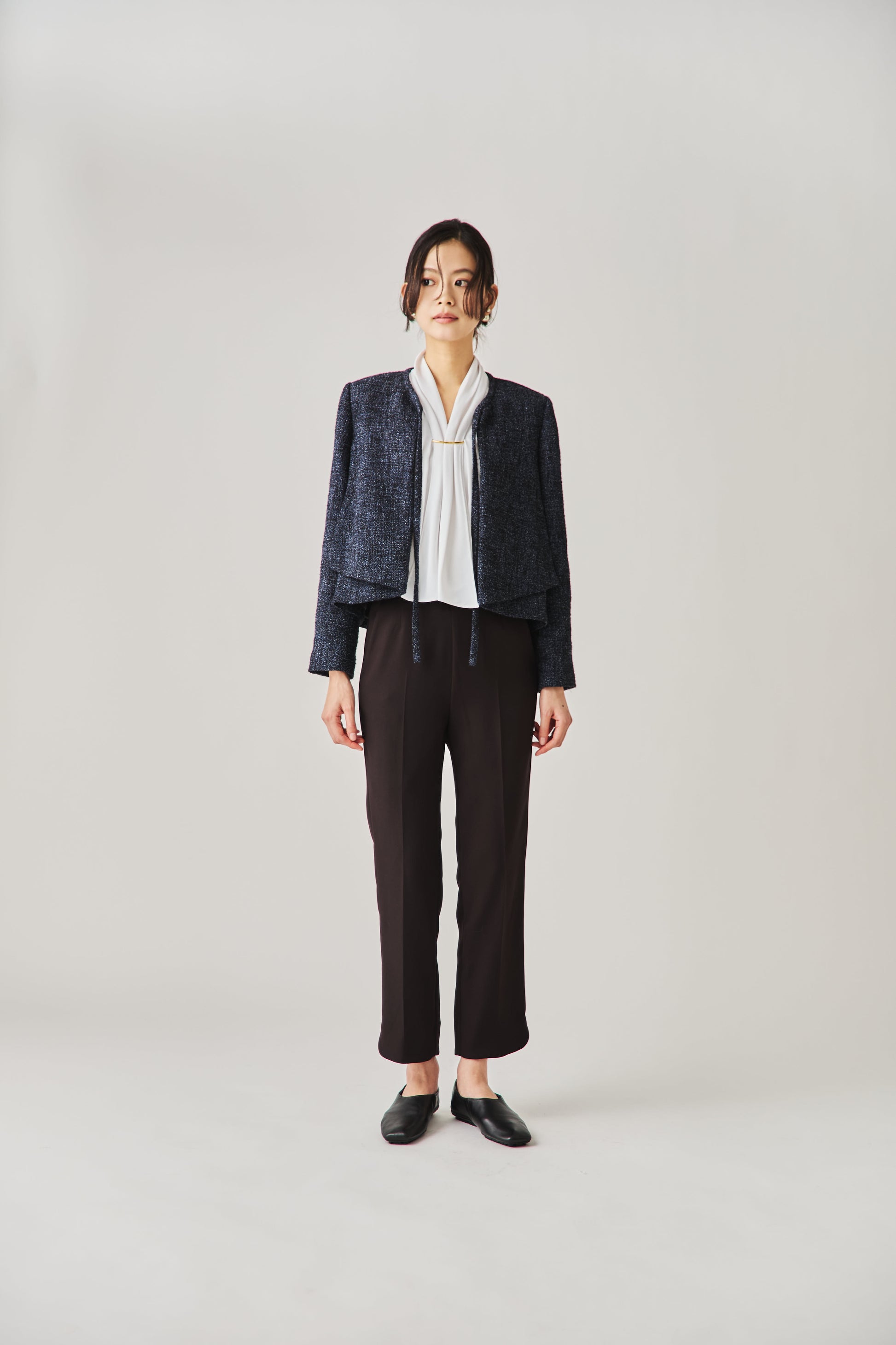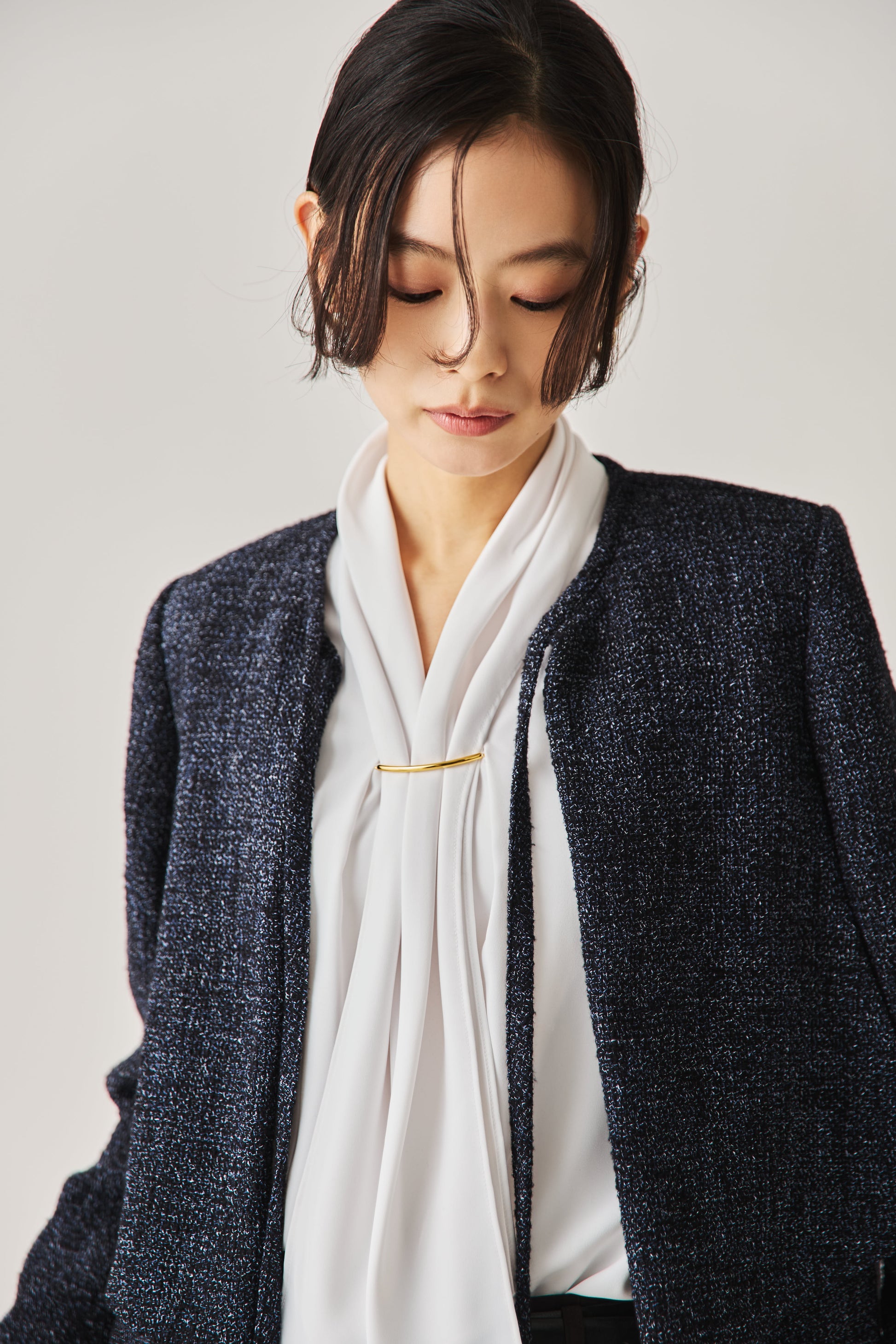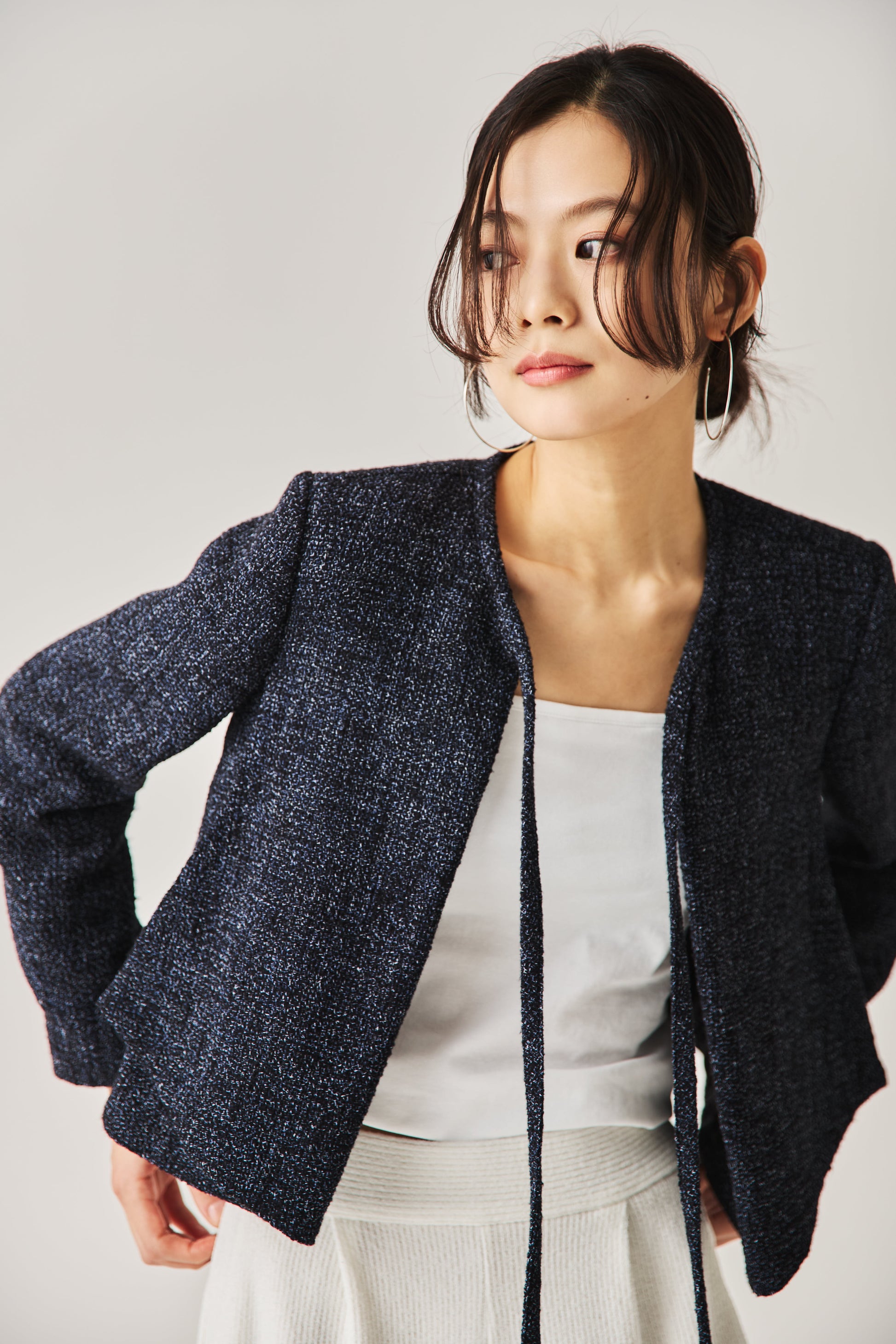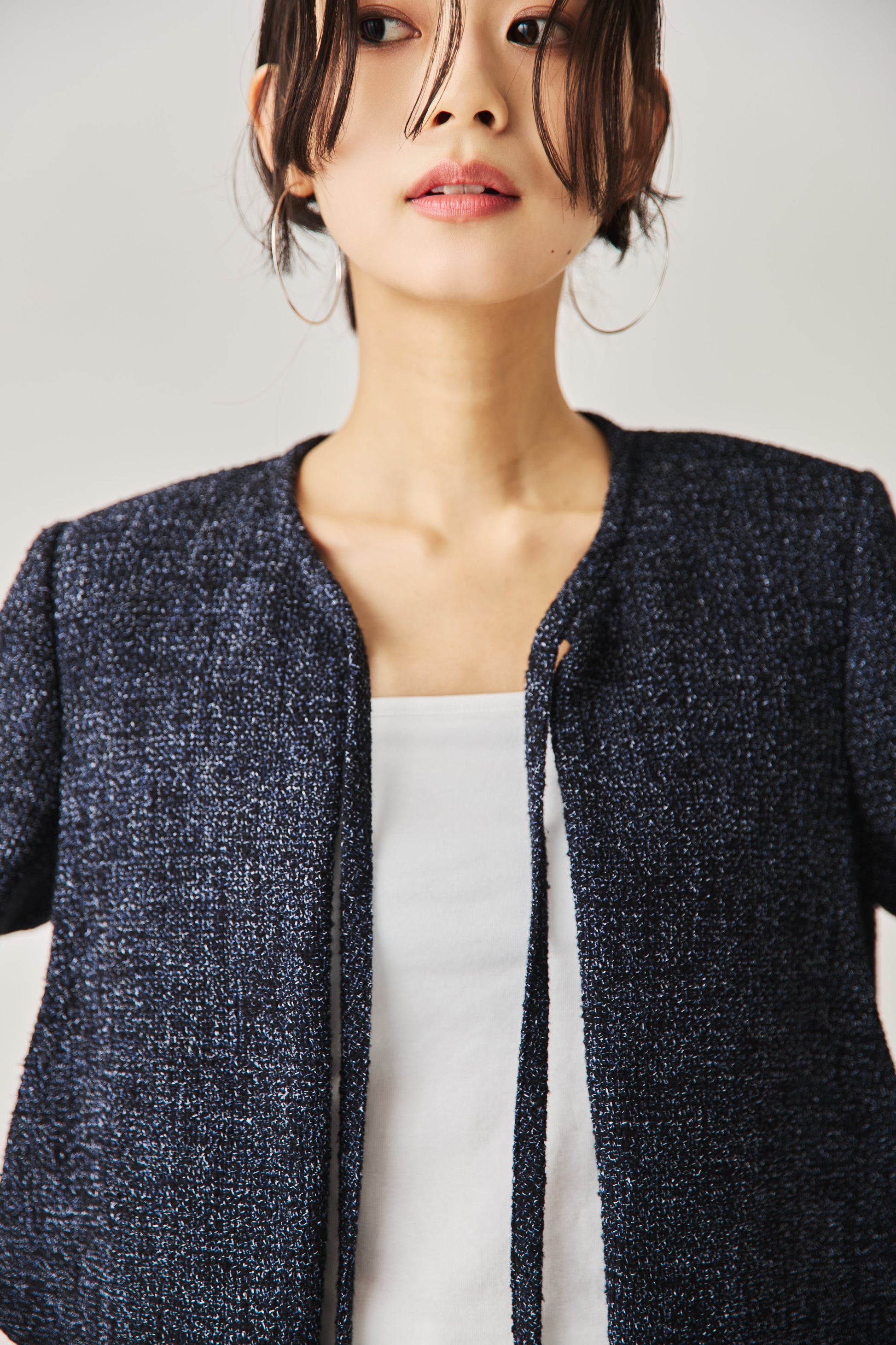 国内の上質なツイード素材を使用したジャケットです。従来の硬いツイードとは一線を画す、ソフトで柔らかい肌触りが魅力。見た目の美しさだけでなく、着心地にもこだわったソフトな風合い。体に優しく馴染み、ストレスフリーで着用いただけます。