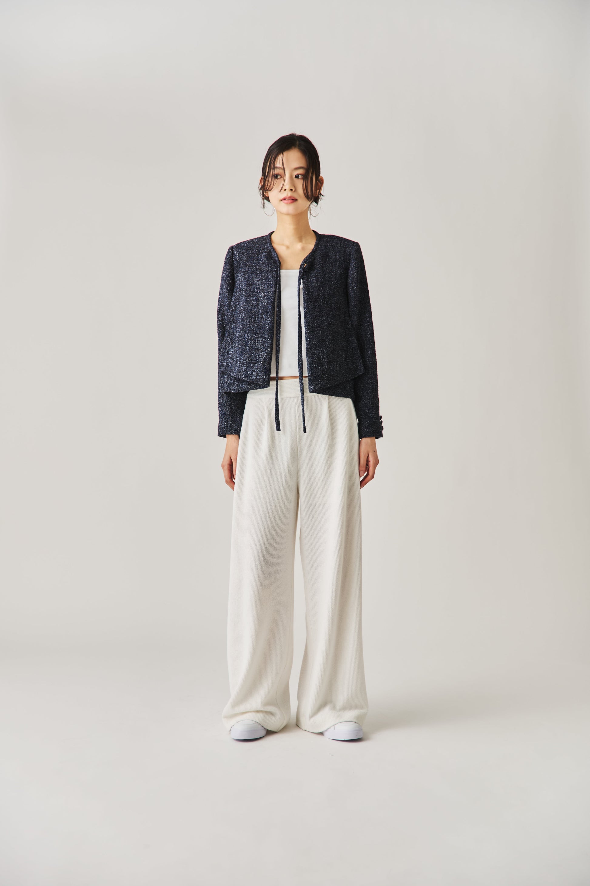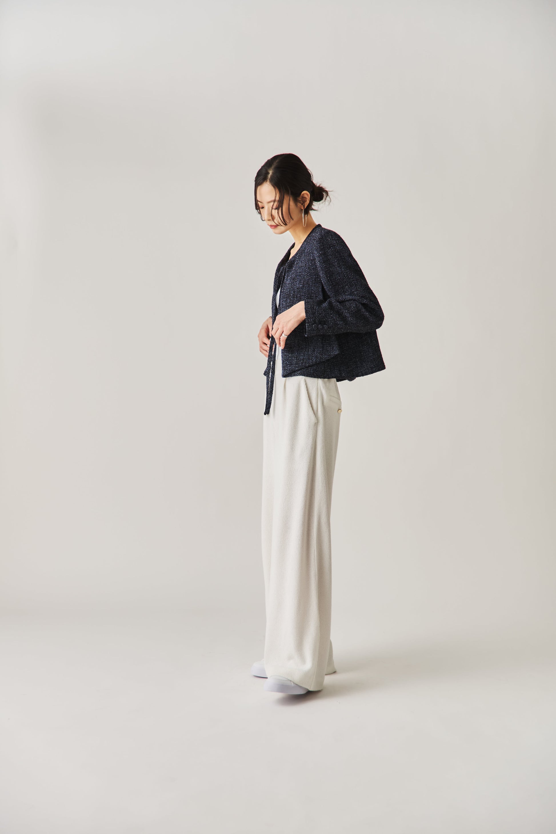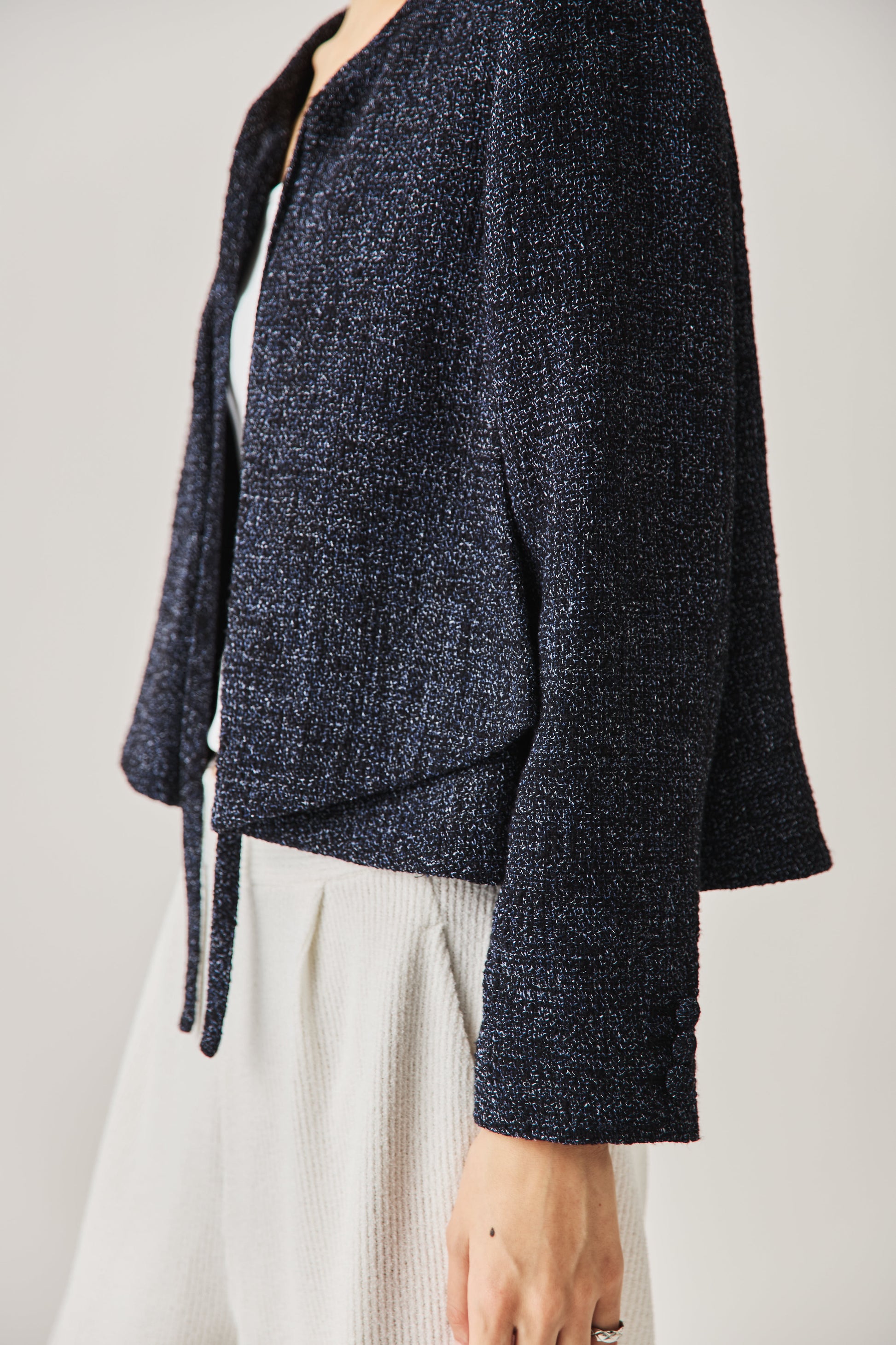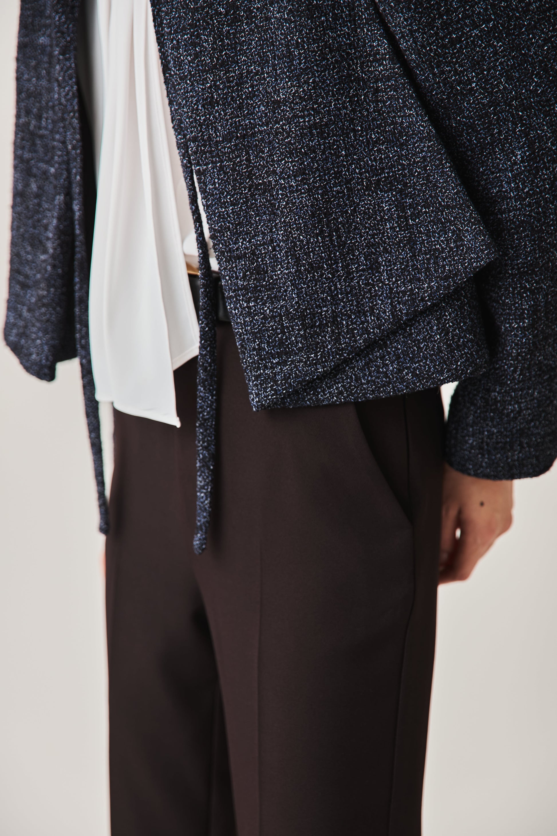 国内の上質なツイード素材を使用したジャケットです。従来の硬いツイードとは一線を画す、ソフトで柔らかい肌触りが魅力。見た目の美しさだけでなく、着心地にもこだわったソフトな風合い。体に優しく馴染み、ストレスフリーで着用いただけます。